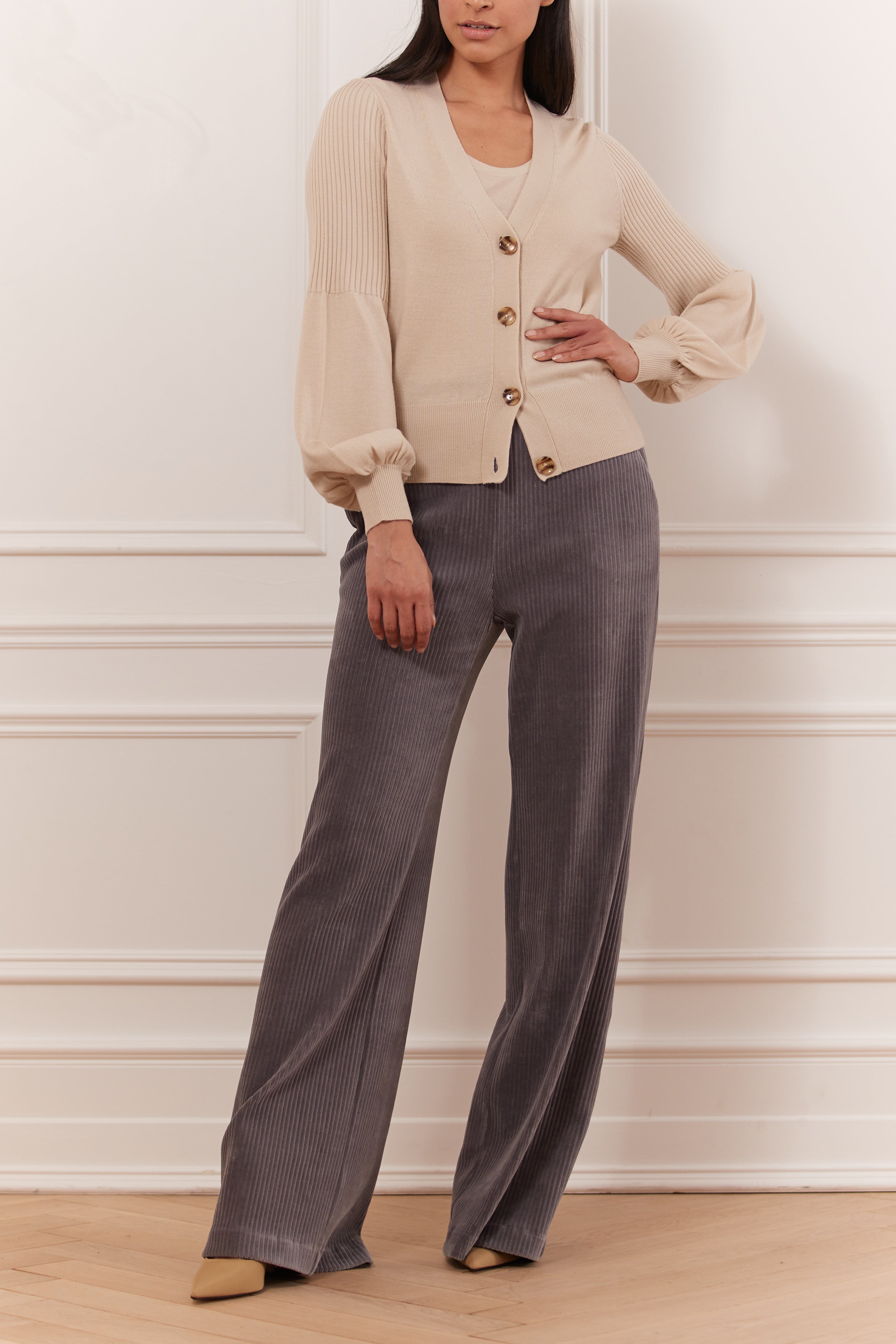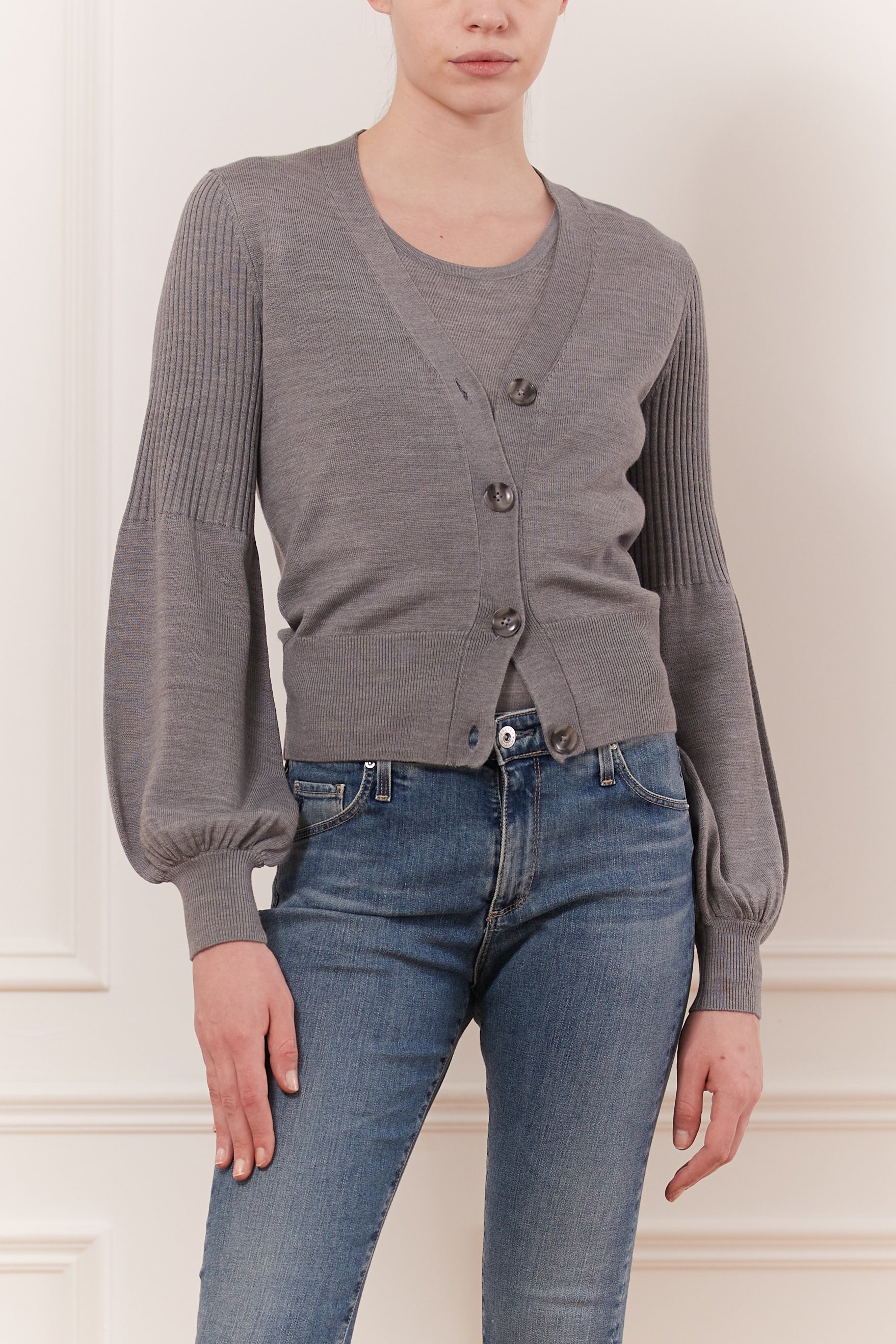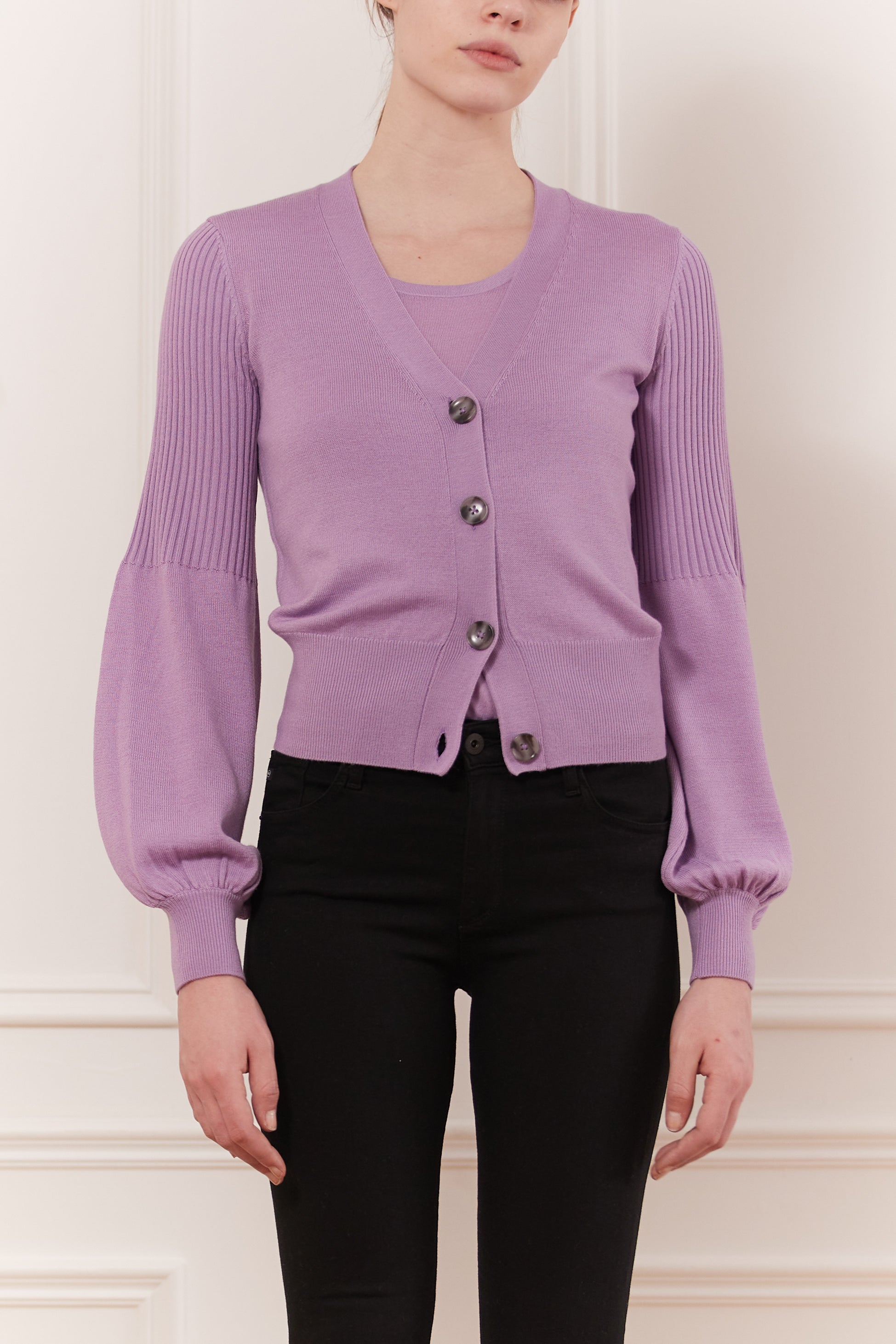 Ce tricot en laine mérinos est doux et confortable. Le tissu parfait pour un ensemble de jumeaux en hiver. Ce cardigan crop à manches dégagées est un look tendance que vous pourrez associer à votre jean préféré pour une soirée ou à un pantalon plus structuré pour le travail.