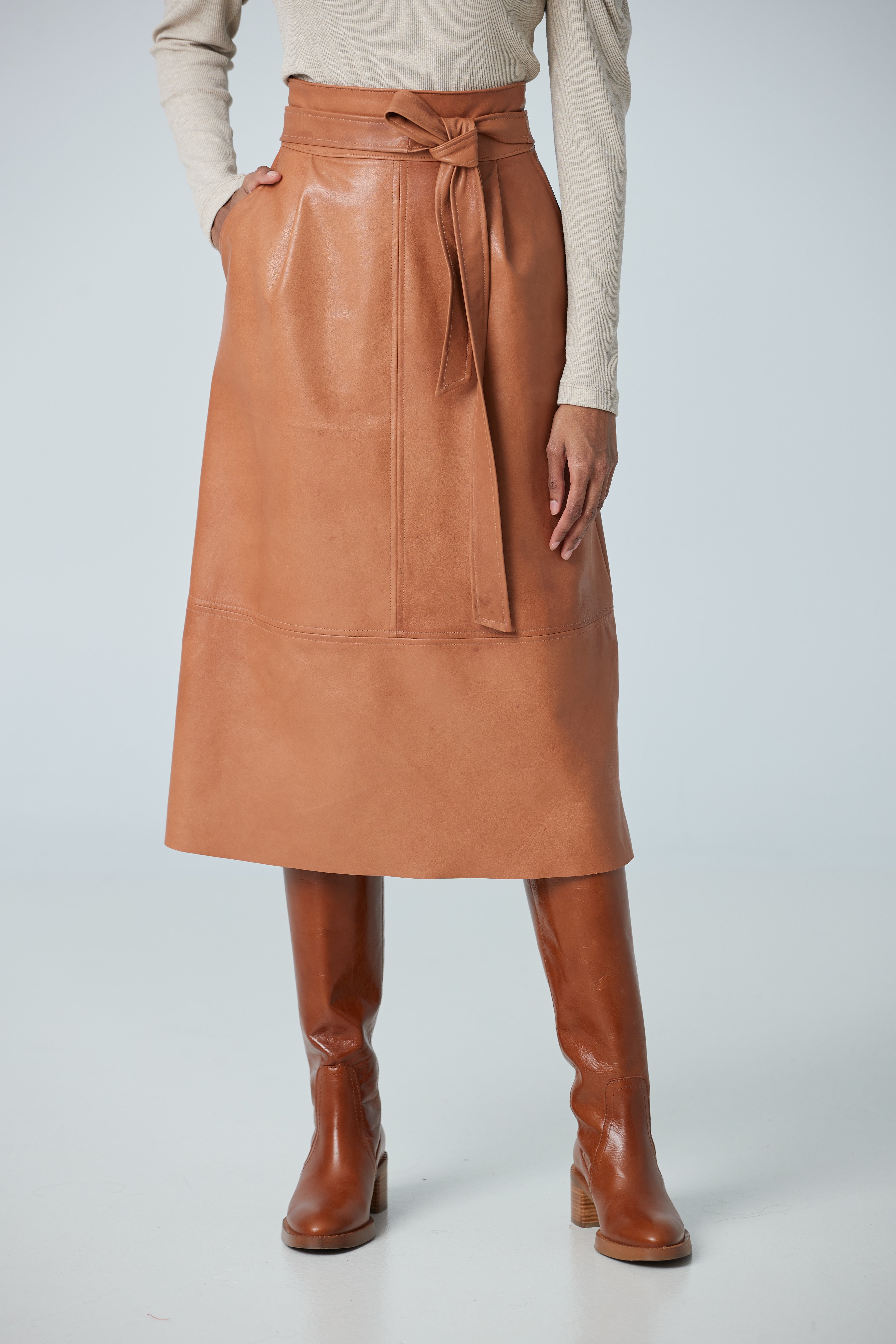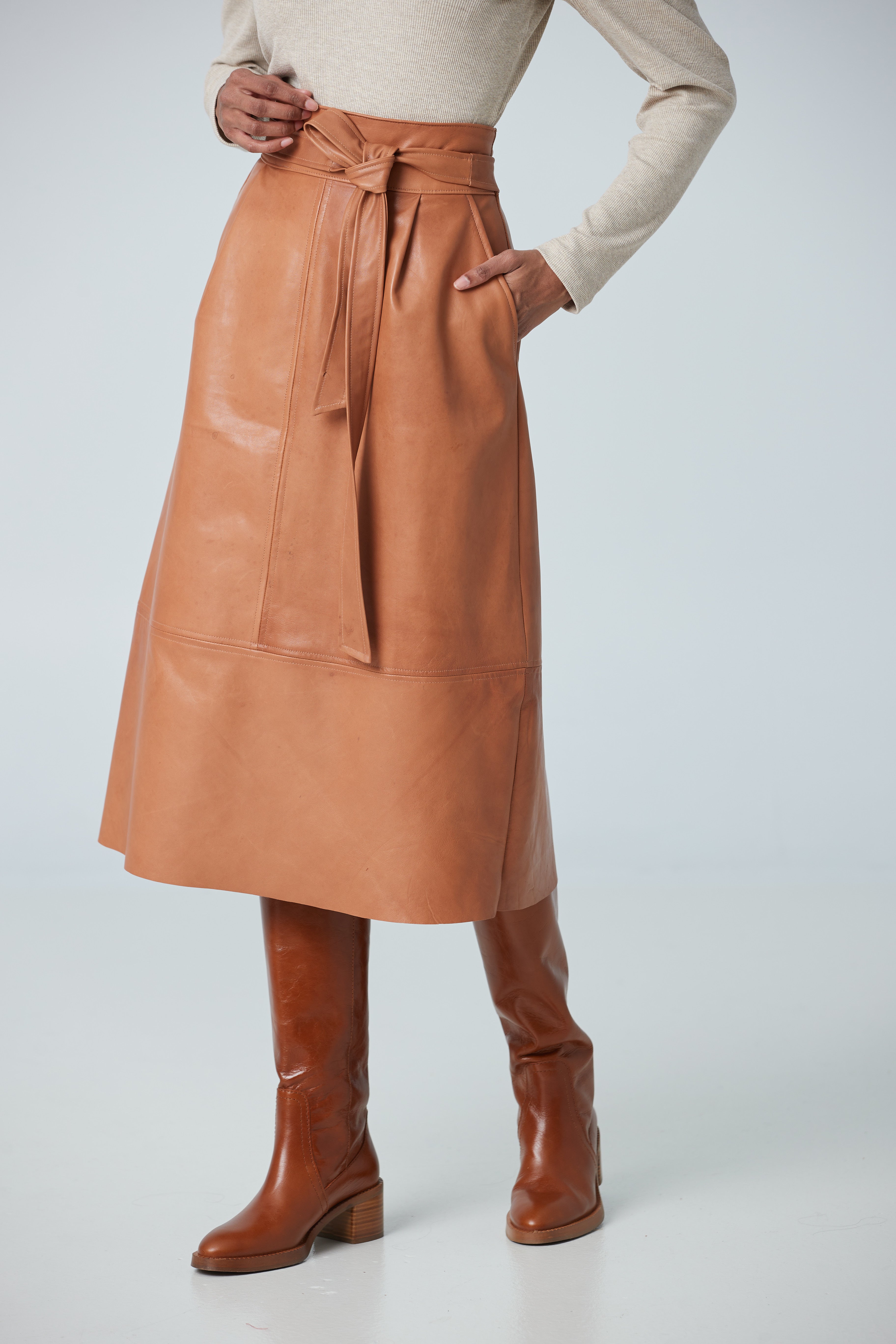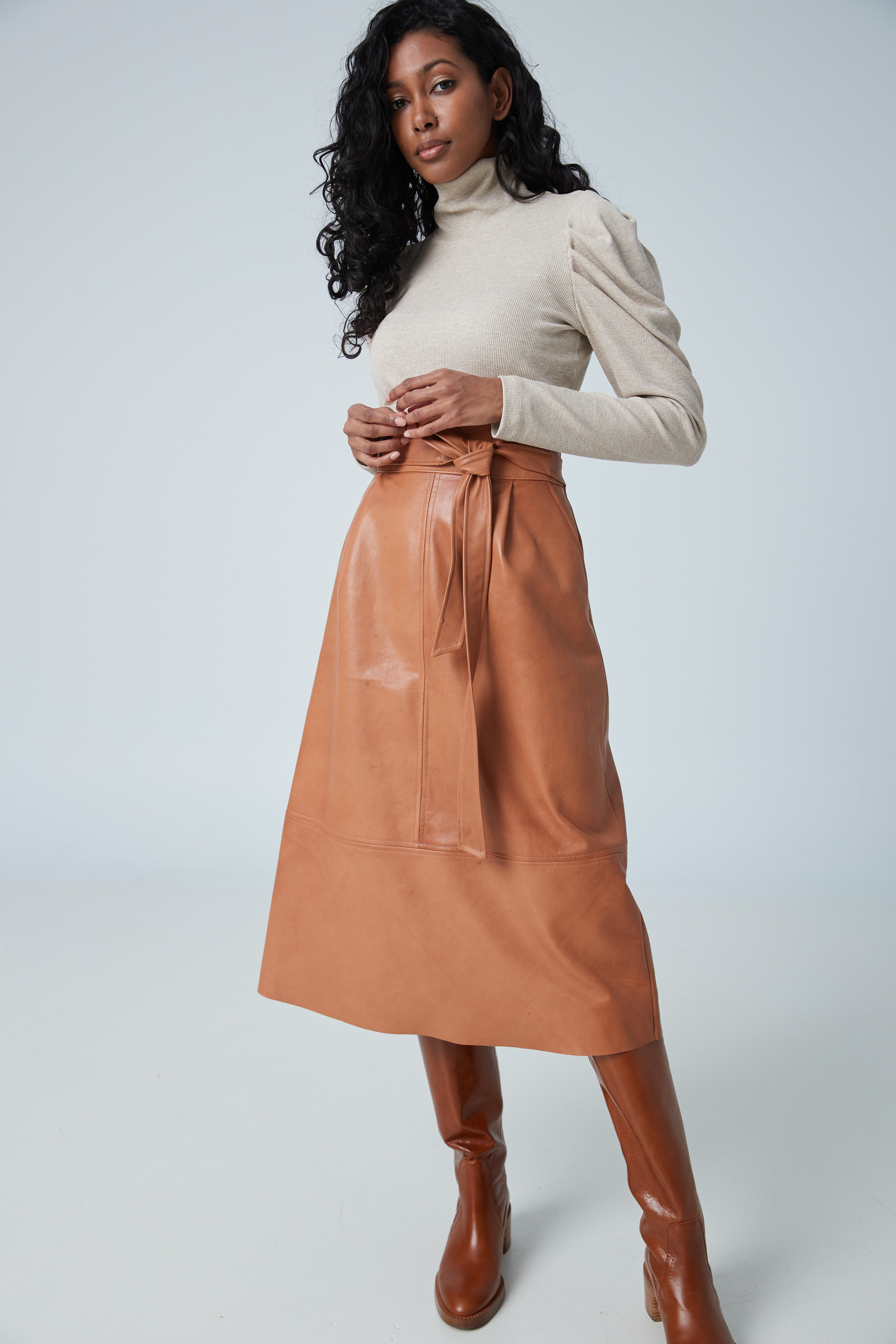 Cette jupe mi-longue en cuird'agneau est un incontournable avec l’arrivée de l’automne. Confortable et élégante, cette jupe est de mise dans votre garde-robe cette saison.