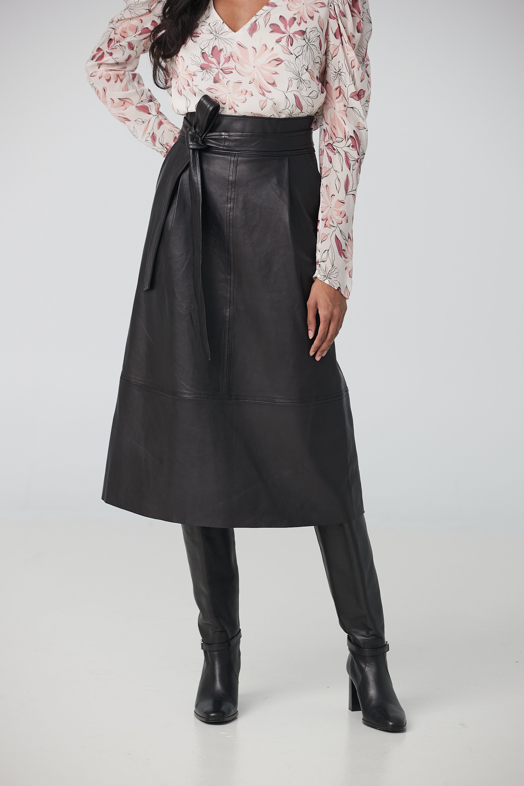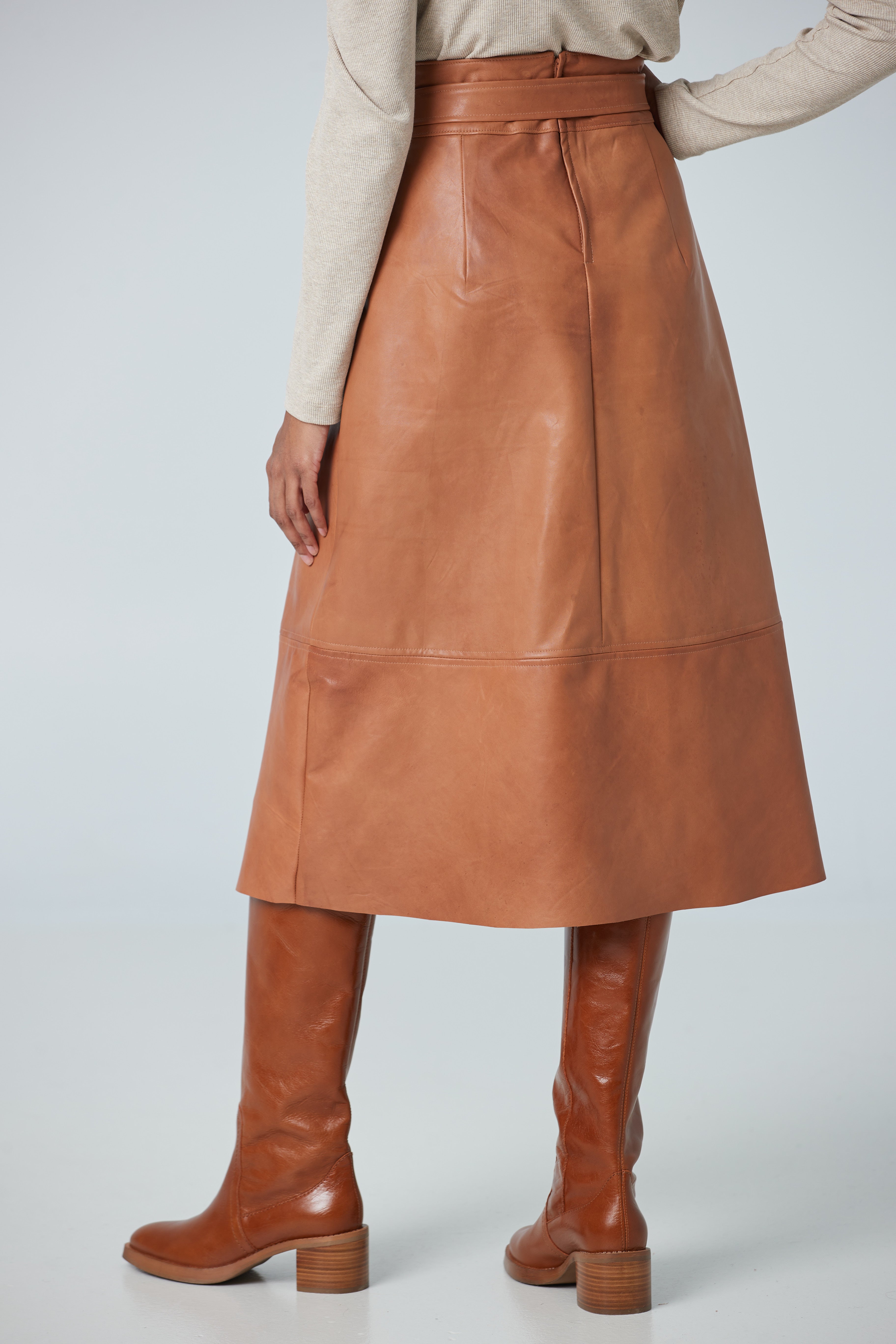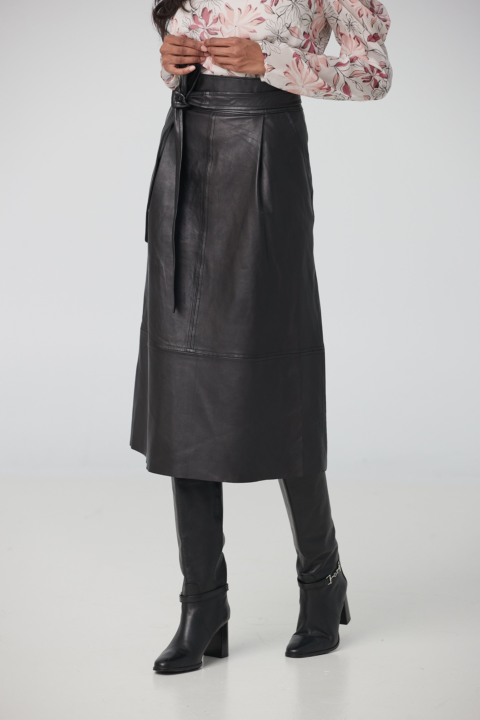 Cette jupe mi-longue en cuird'agneau est un incontournable avec l’arrivée de l’automne. Confortable et élégante, cette jupe est de mise dans votre garde-robe cette saison.