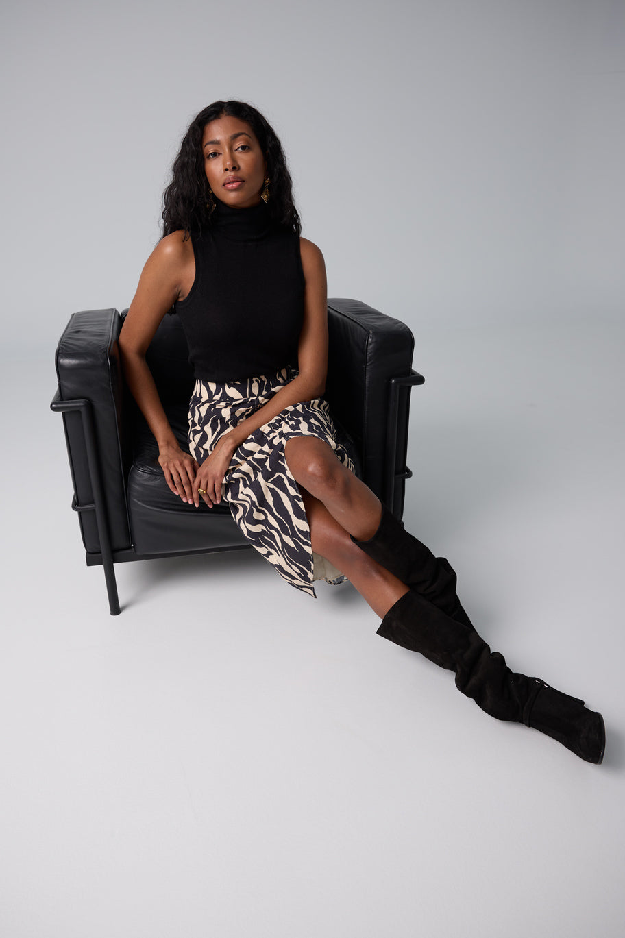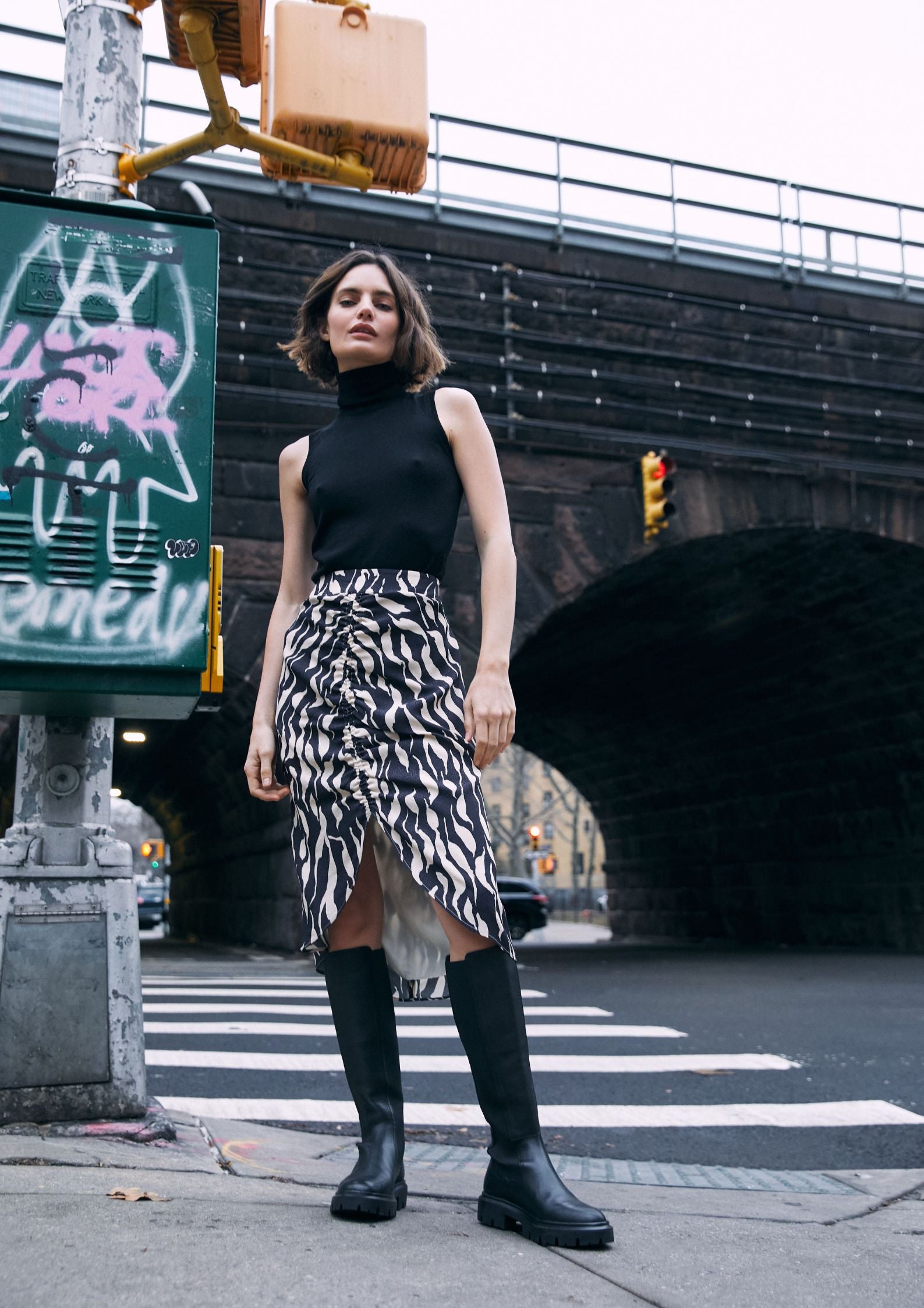 Cette jupe plissée et fendue sur le devant sera parfaite pour l'arrivée de l'automne. Portez-la avec des bottes hautes et le tour est joué.