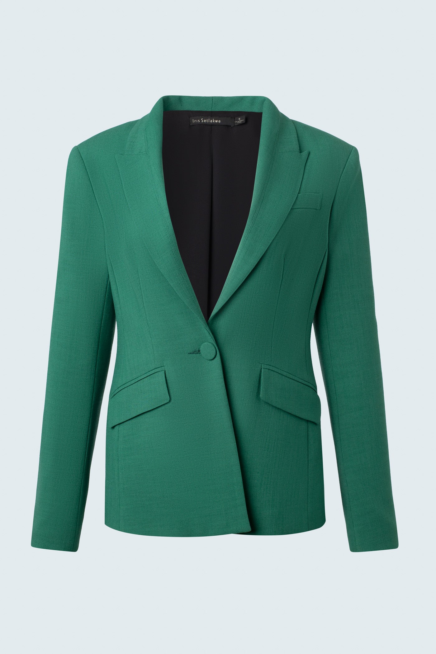 Une élégance intemporelle et puissante. Cette veste sophistiquée présente de belles coutures contrastées au niveau du col.
