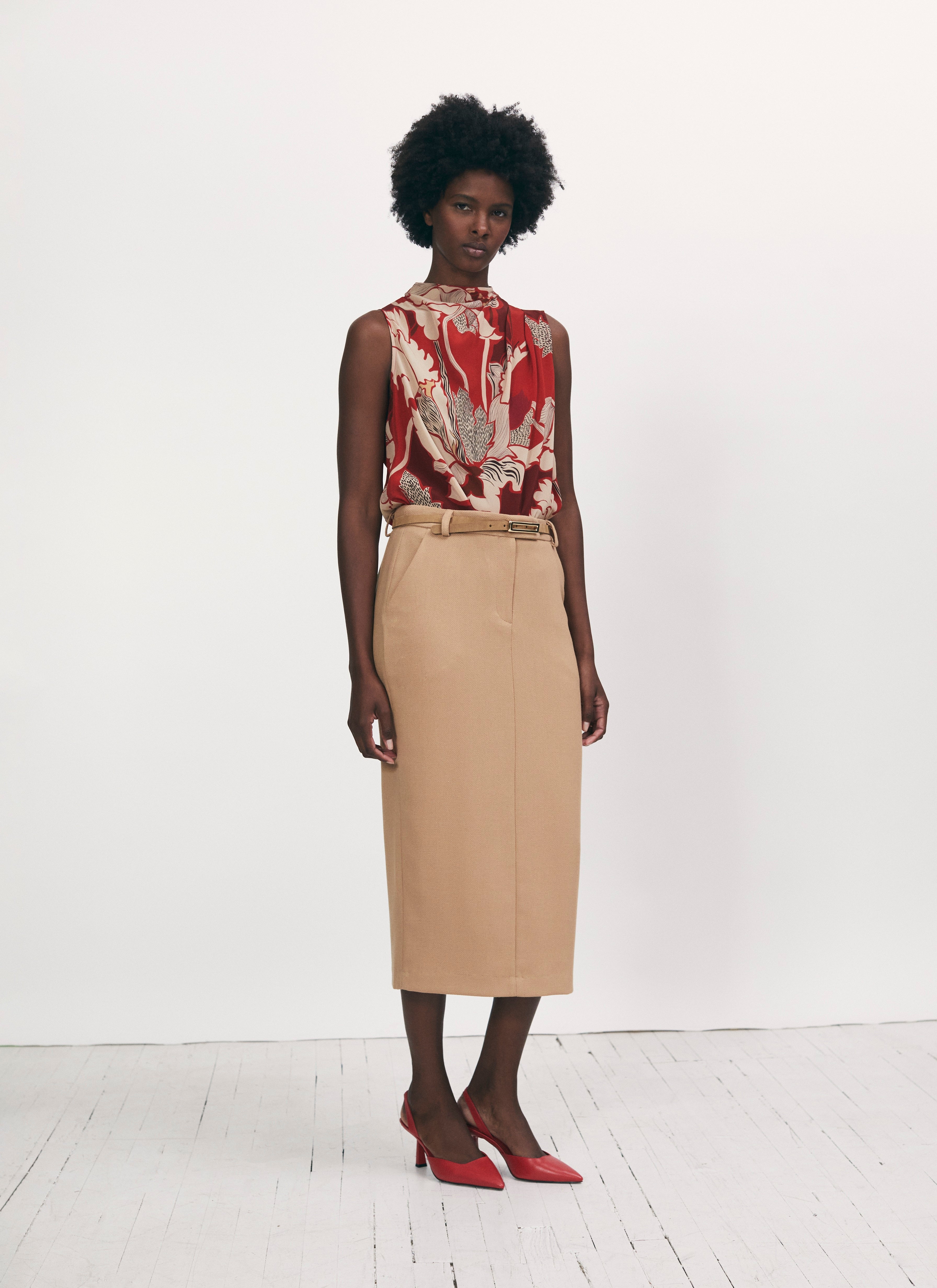 Cette élégante jupe longue et étroite allie confort et style. Notre équipe de conception a eu le coup de foudre pour la texture et l'aspect du tissu Colette.