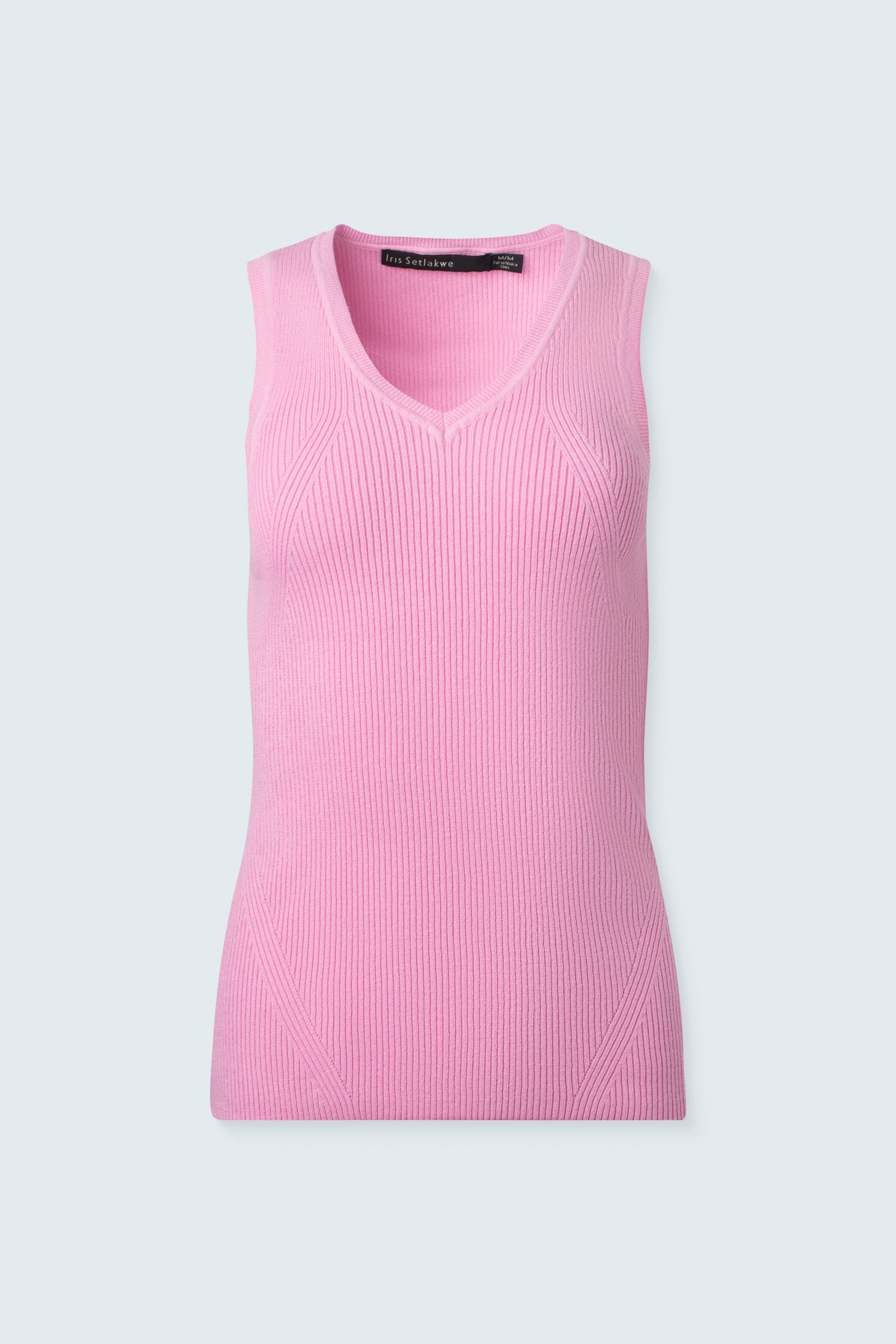 Ce tricot côtelé en viscose est le haut parfait sous un blazer ou un manteau. Léger, très confortable et facile à entretenir. Ce haut sans manches à col V en tricot est un très bon basique à ajouter à votre garde-robe.