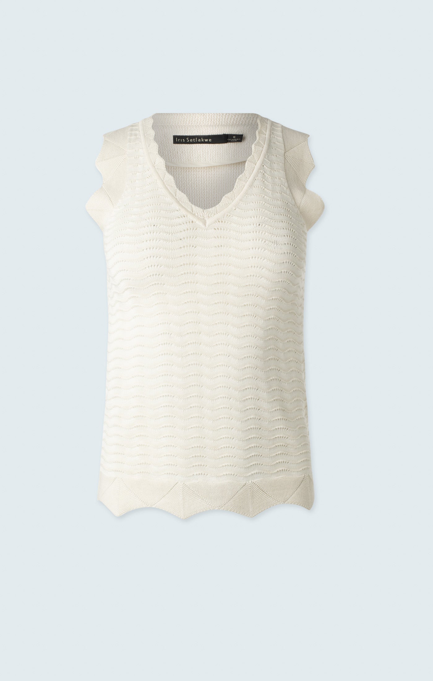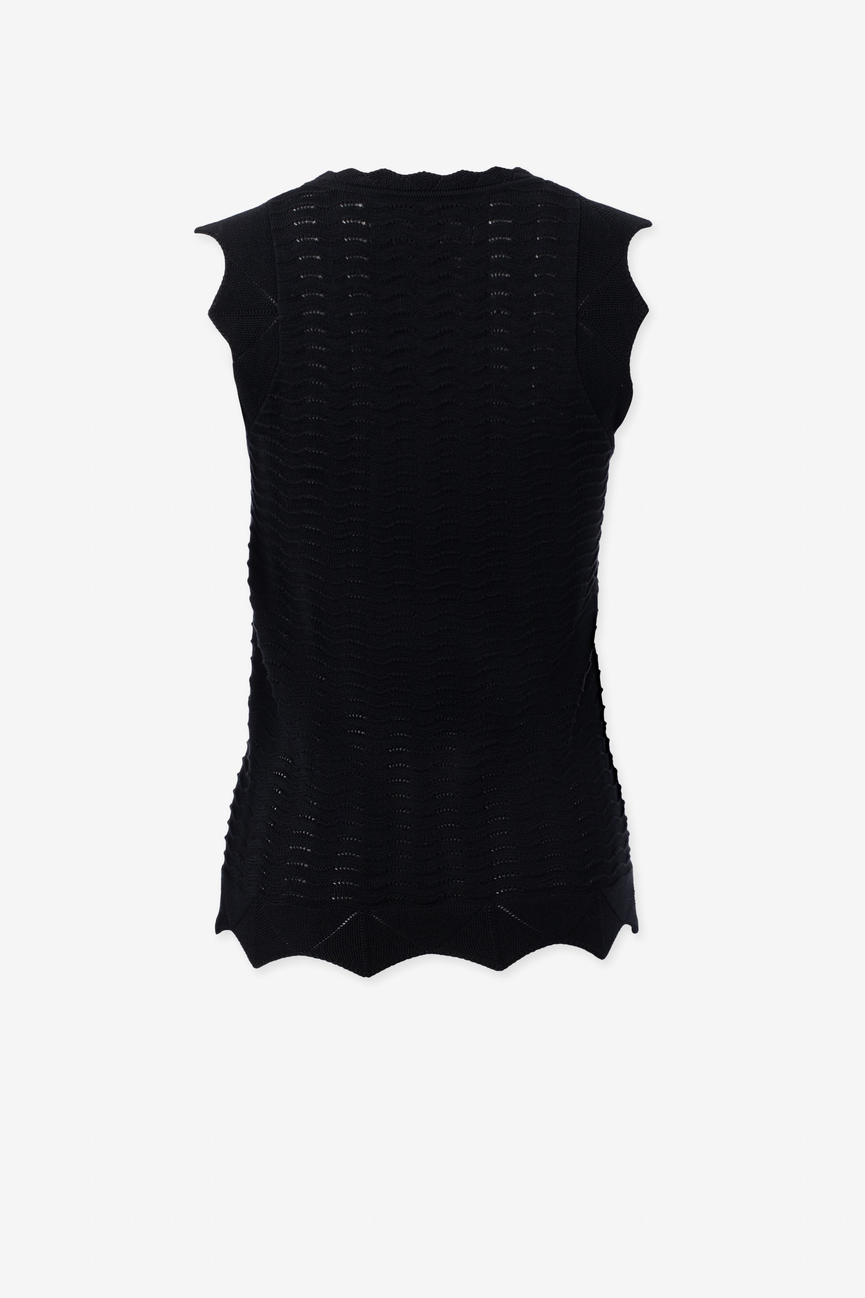 Ce haut en tricot est orné de jolis détails festonnés le long des manches, ajoutant une touche de sophistication. Rehaussez votre look de tous les jours avec cette pièce versatile qui permet une transition parfaite du jour à la nuit.