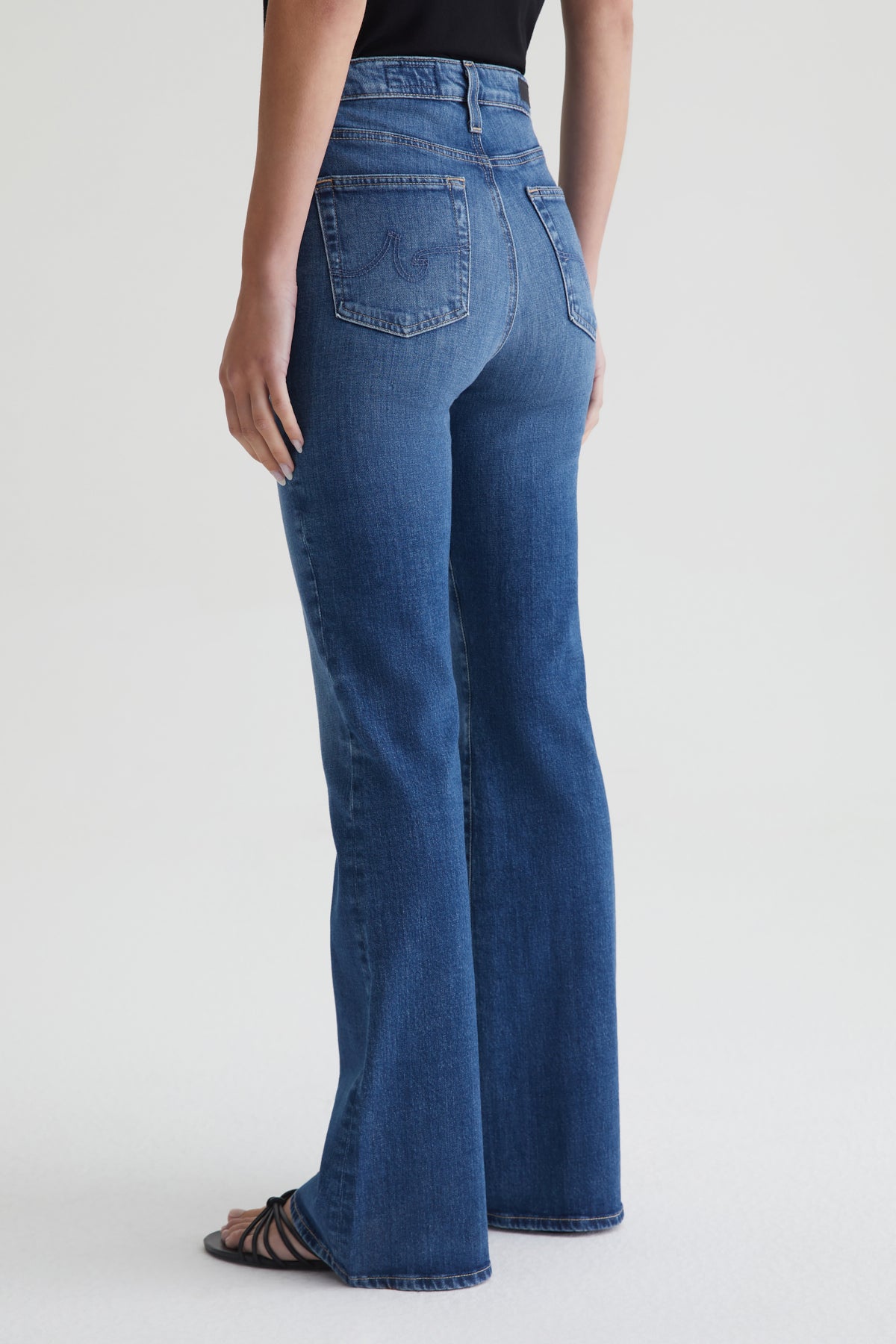 Notre jean évasé à taille haute Madi présente une silhouette inspirée des années 70 et un délavage indigo moyen avec une décoloration parfaite. Fabriqué en denim Journey 11 oz. Journey Denim 11 oz au mélange extensible, ce modèle est conçu pour épouser les hanches et allonger les jambes. La paire se situe au niveau de la taille naturelle et présente une longueur étendue qui s'évase pour une coupe nostalgique incroyablement flatteuse pour la silhouette.