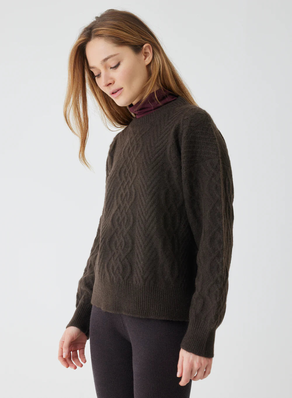 Ce pull à manches longues et col rond en laine de yack allie chaleur et texture grâce à son motif torsadé classique. Confectionné dans une laine de yack douce et luxueuse, il offre une coupe confortable et élégante pour les journées froides. Idéal à porter seul ou en superposition, ce pull est un incontournable raffiné de votre garde-robe.