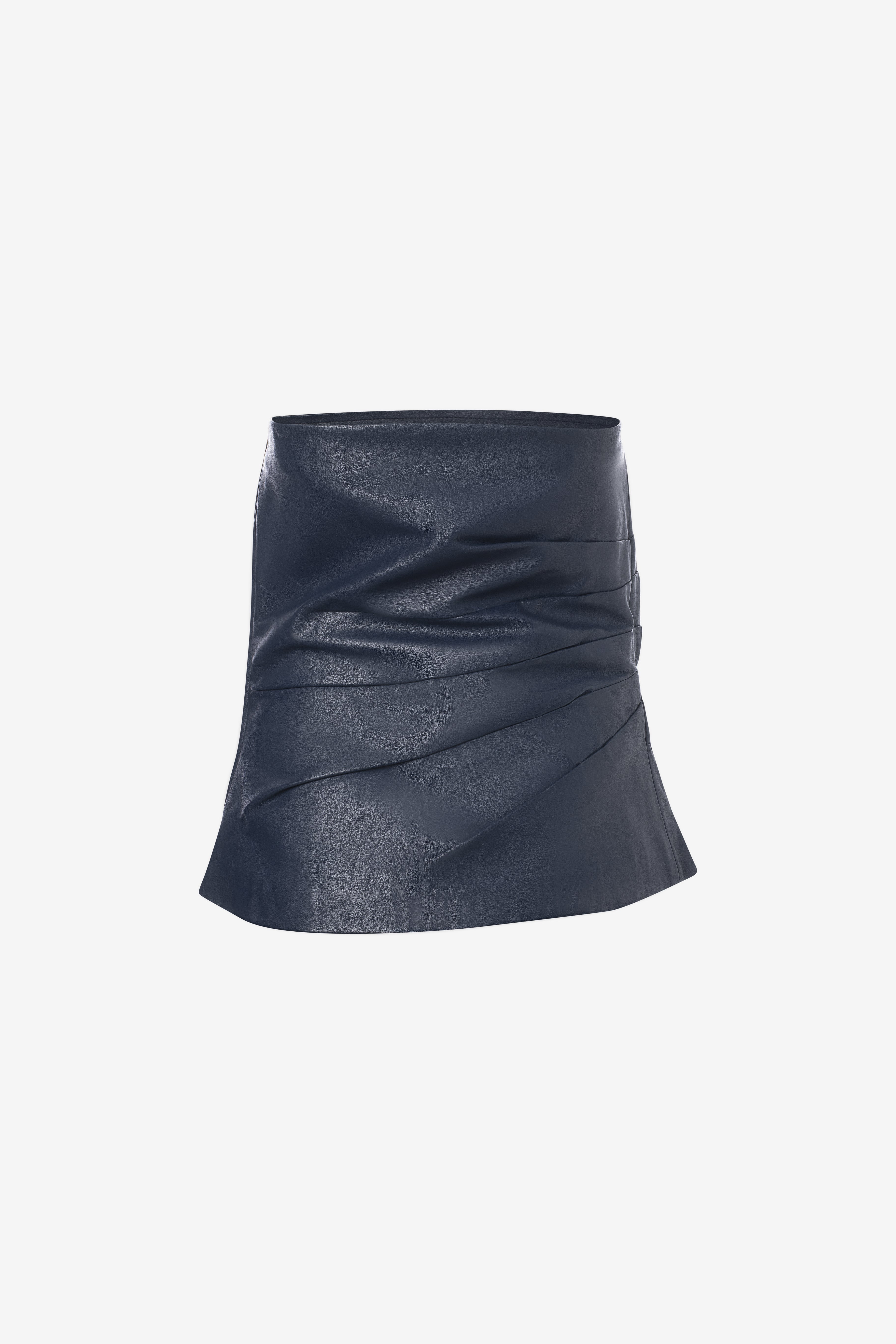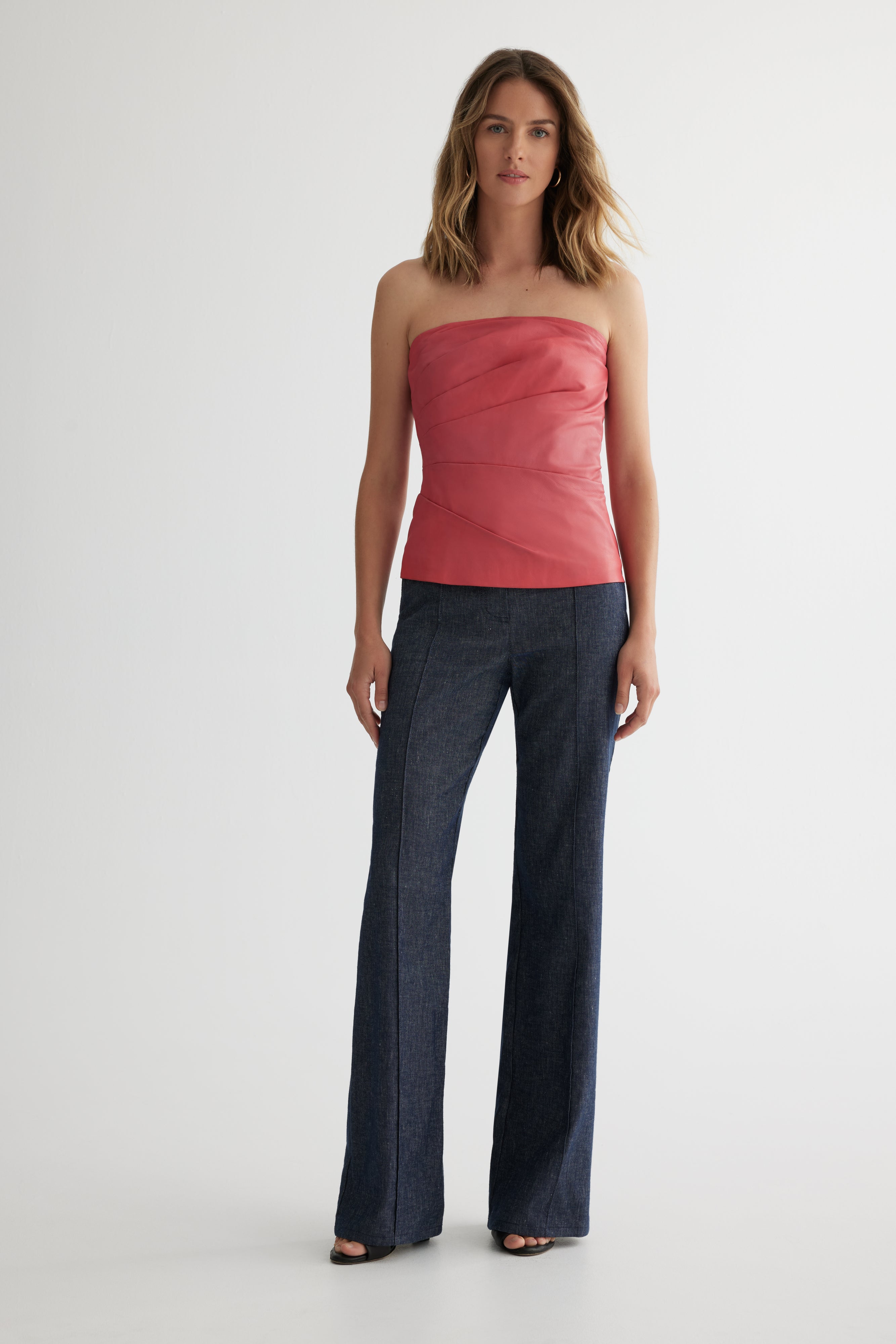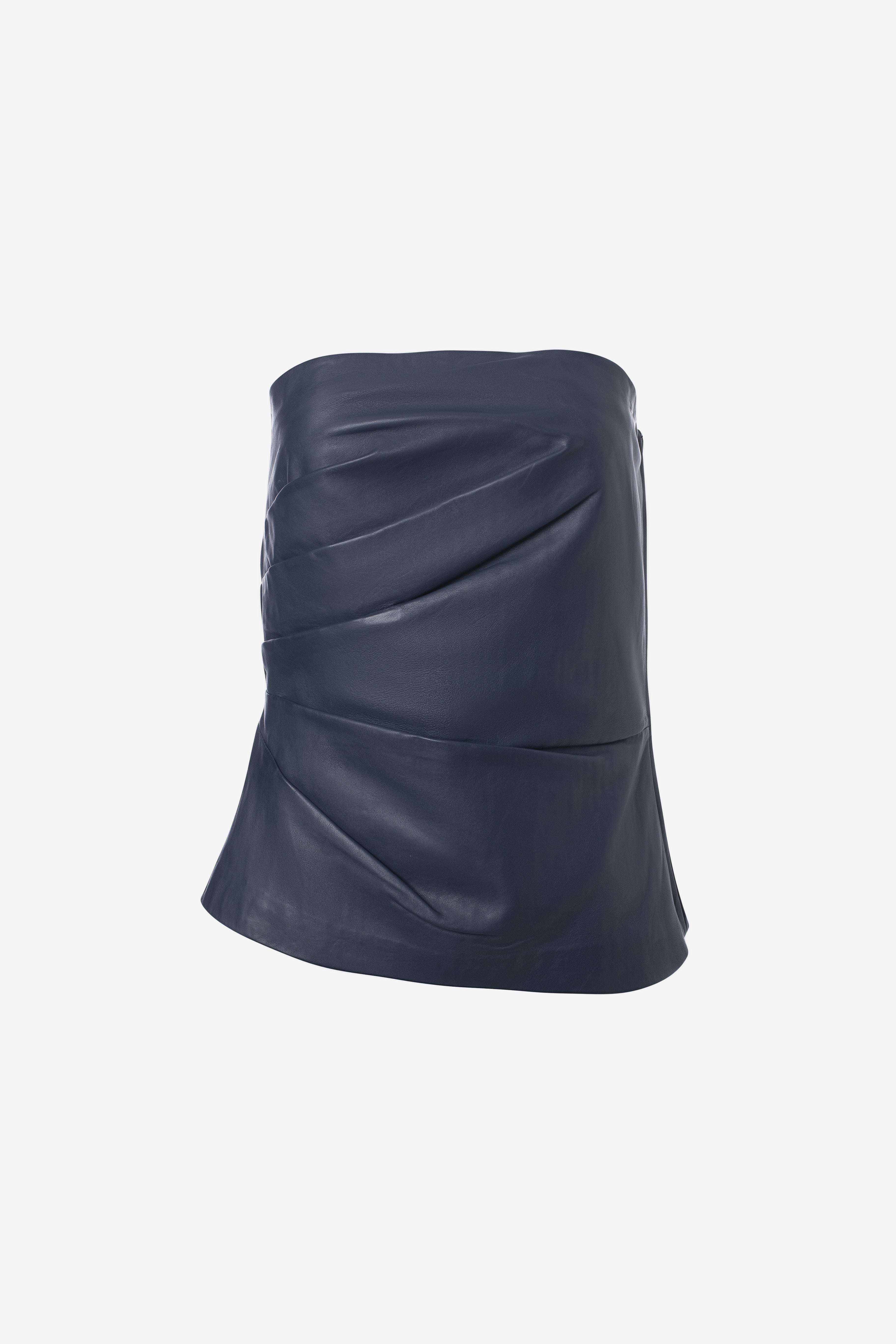 Bustier en cuir avec fermeture sur le côté. L'effet plissé au niveau de la poitrine amincie la taille et donne un look élégant.