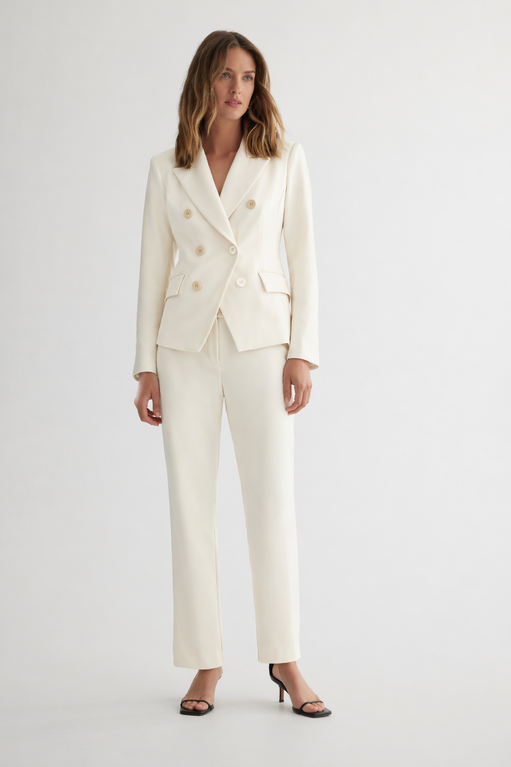 Ce veston double boutonnage à six boutons fabriqué à partir de l'un de nos meilleurs tissus importé d'Italie. Le scuba est un tissu doux, extensible et luxueux.