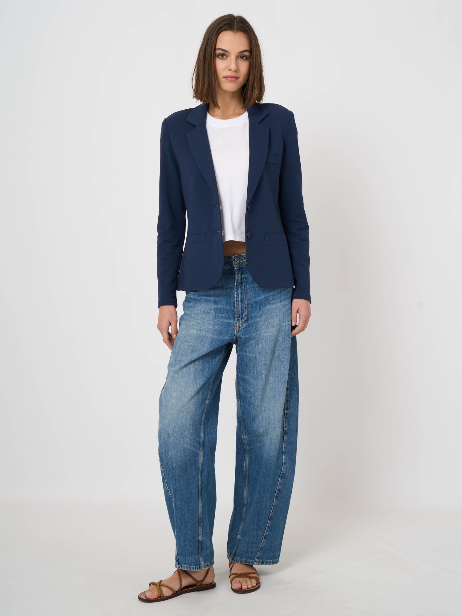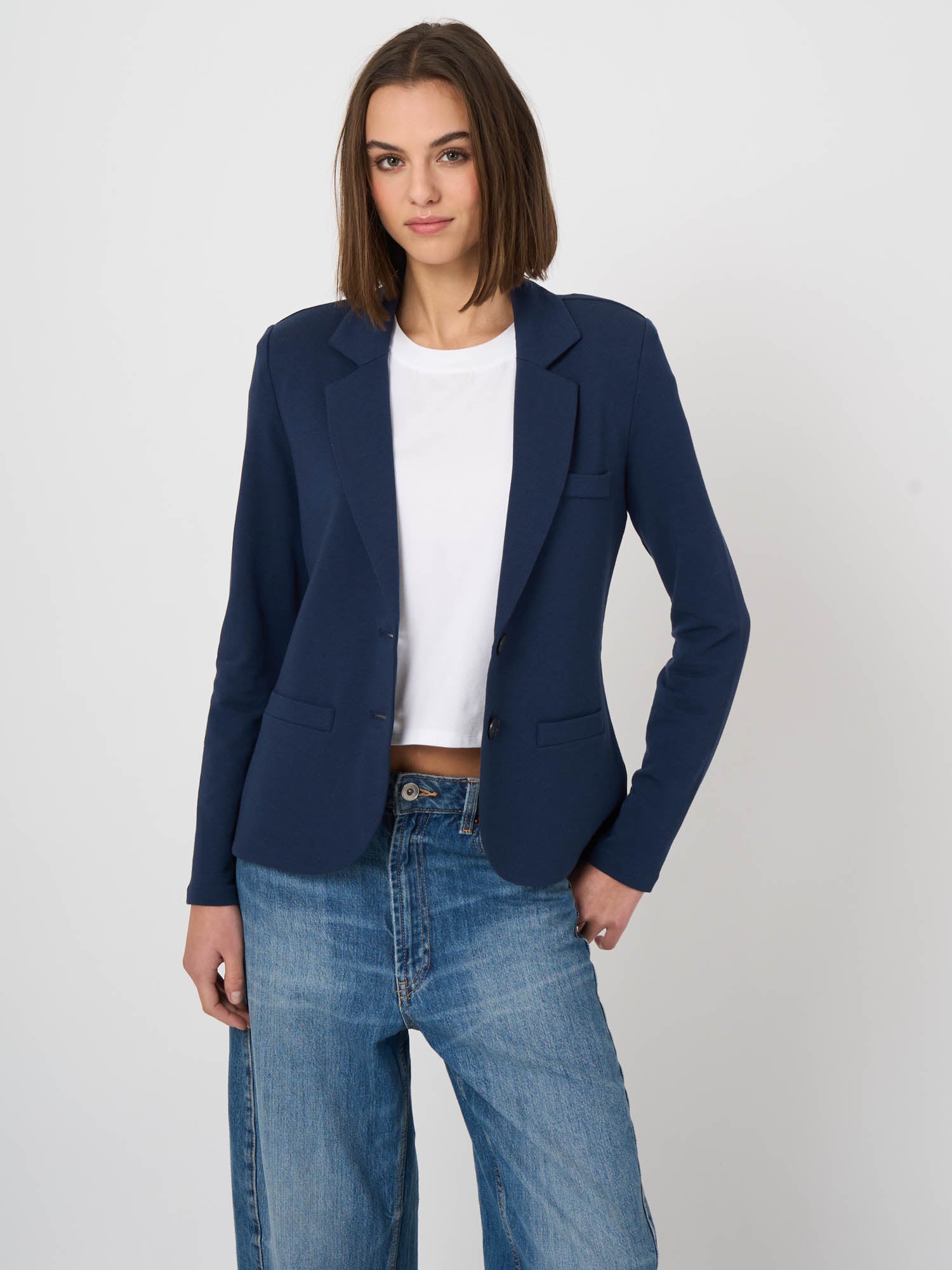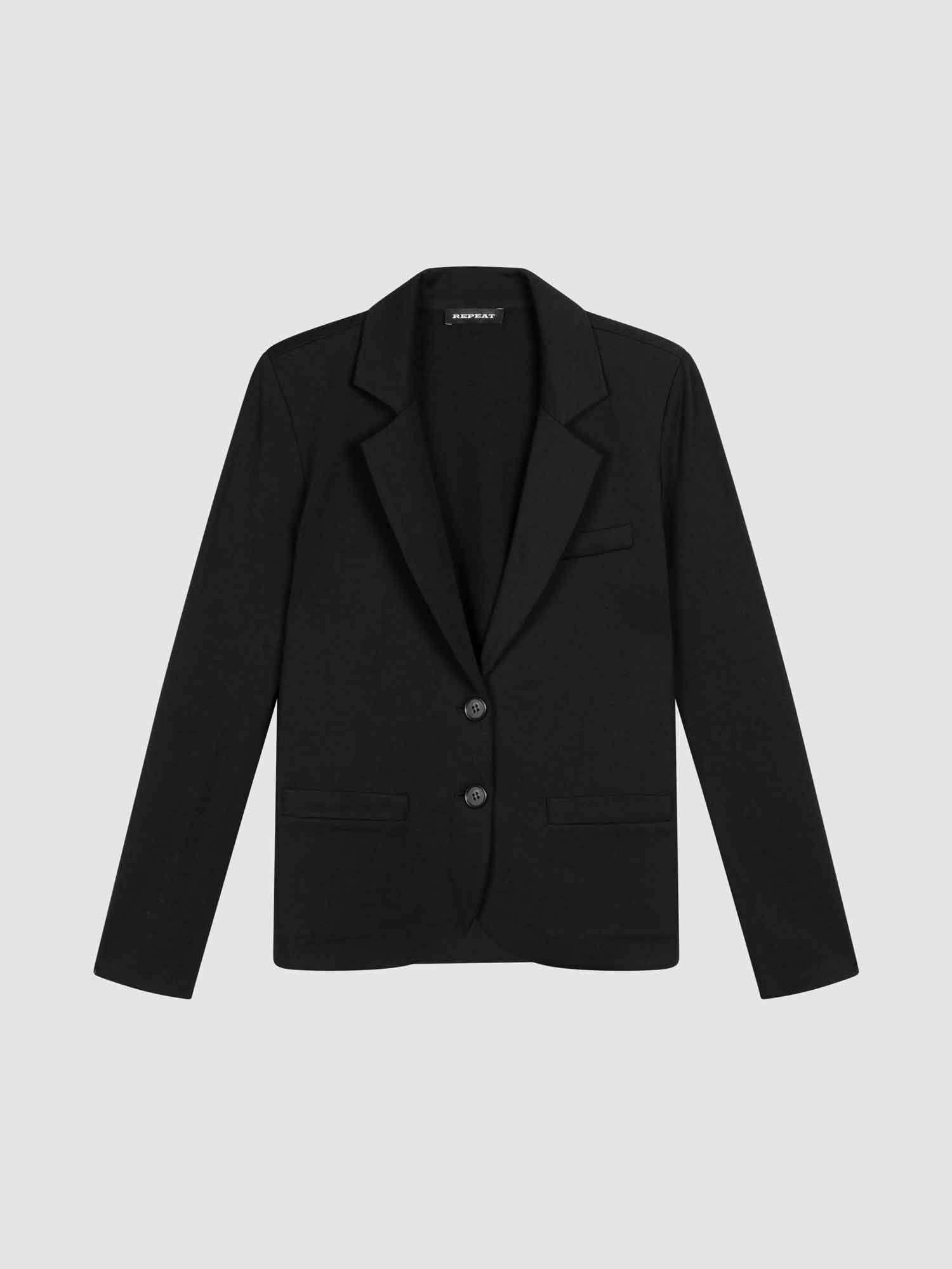 This soft knitted blazer blends tailored structure with casual ease. Designed with a notched lapel collar, patch pockets, and subtle back vent, it offers polished versatility. Gently shaped for a relaxed fit, it layers effortlessly over tees, blouses, or knits.