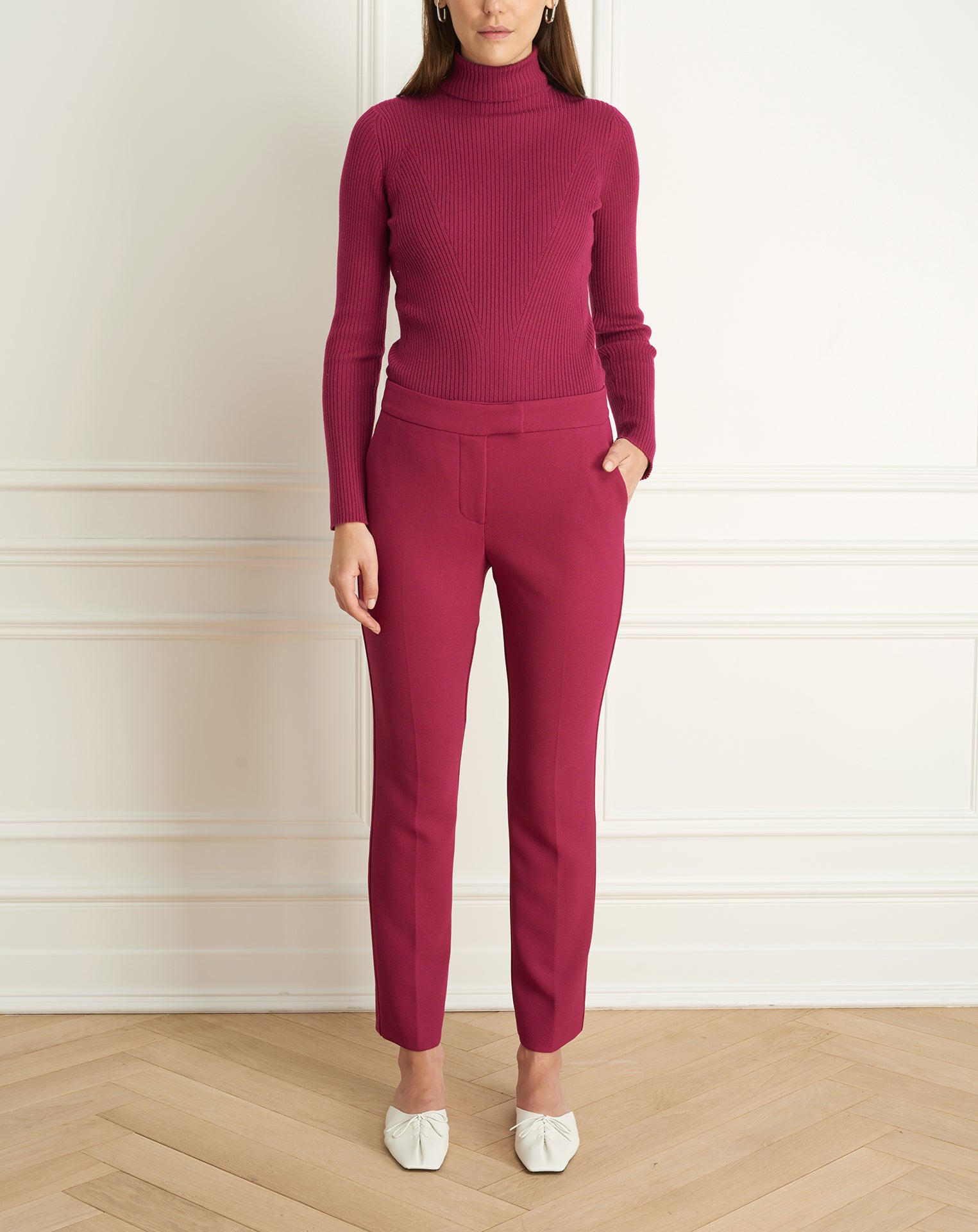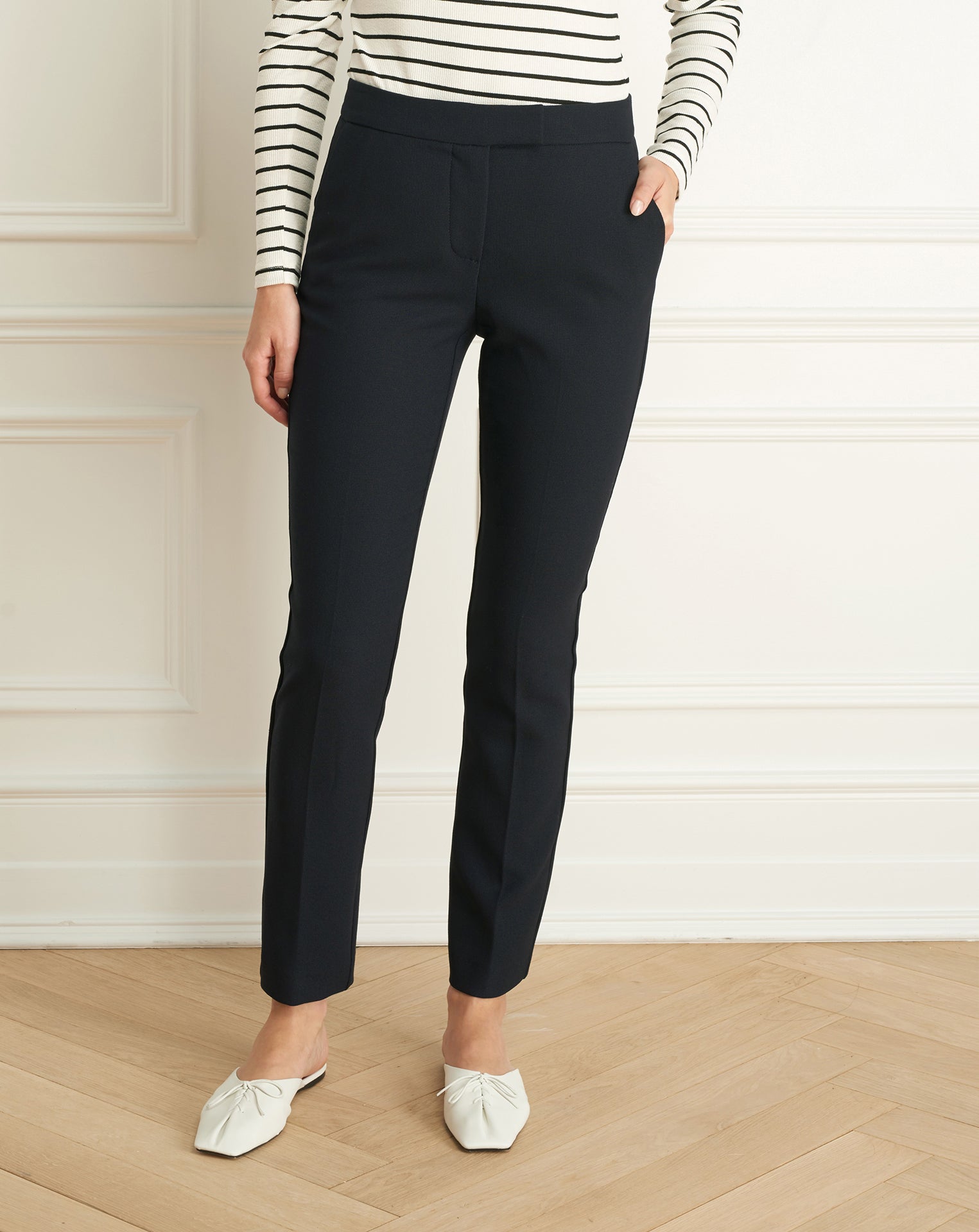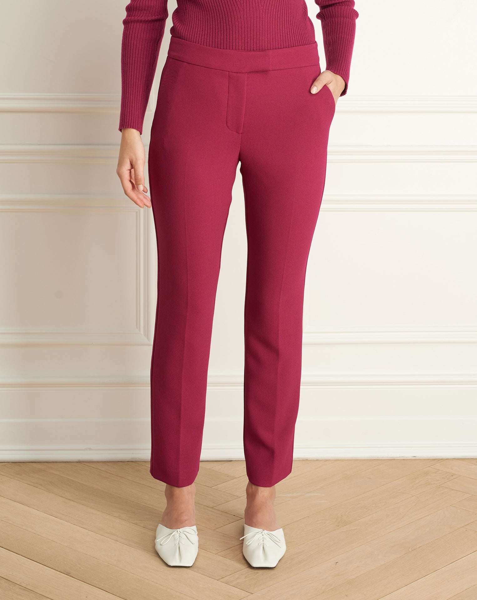 Knitted feels with a viscose Blend. A classic for all silhouettes. Narrow lined trousers made of stretch material with front and back pockets. A zip is integrated in the front of the pants with 2 fasteners for a nice finish.