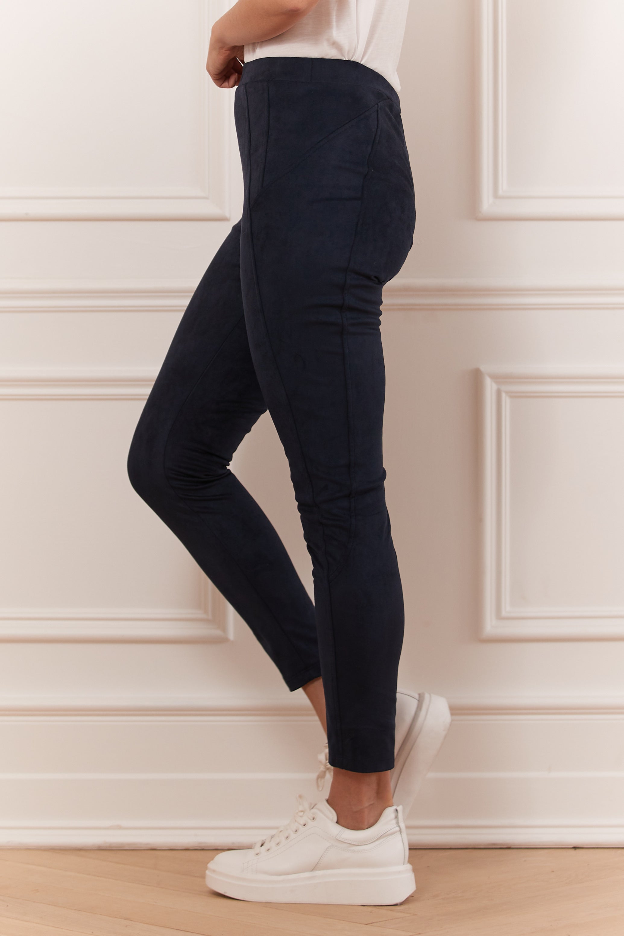High-waisted suede legging. This piece is made of a thick stretch fabric to cover the imperfections we dread from leggings.