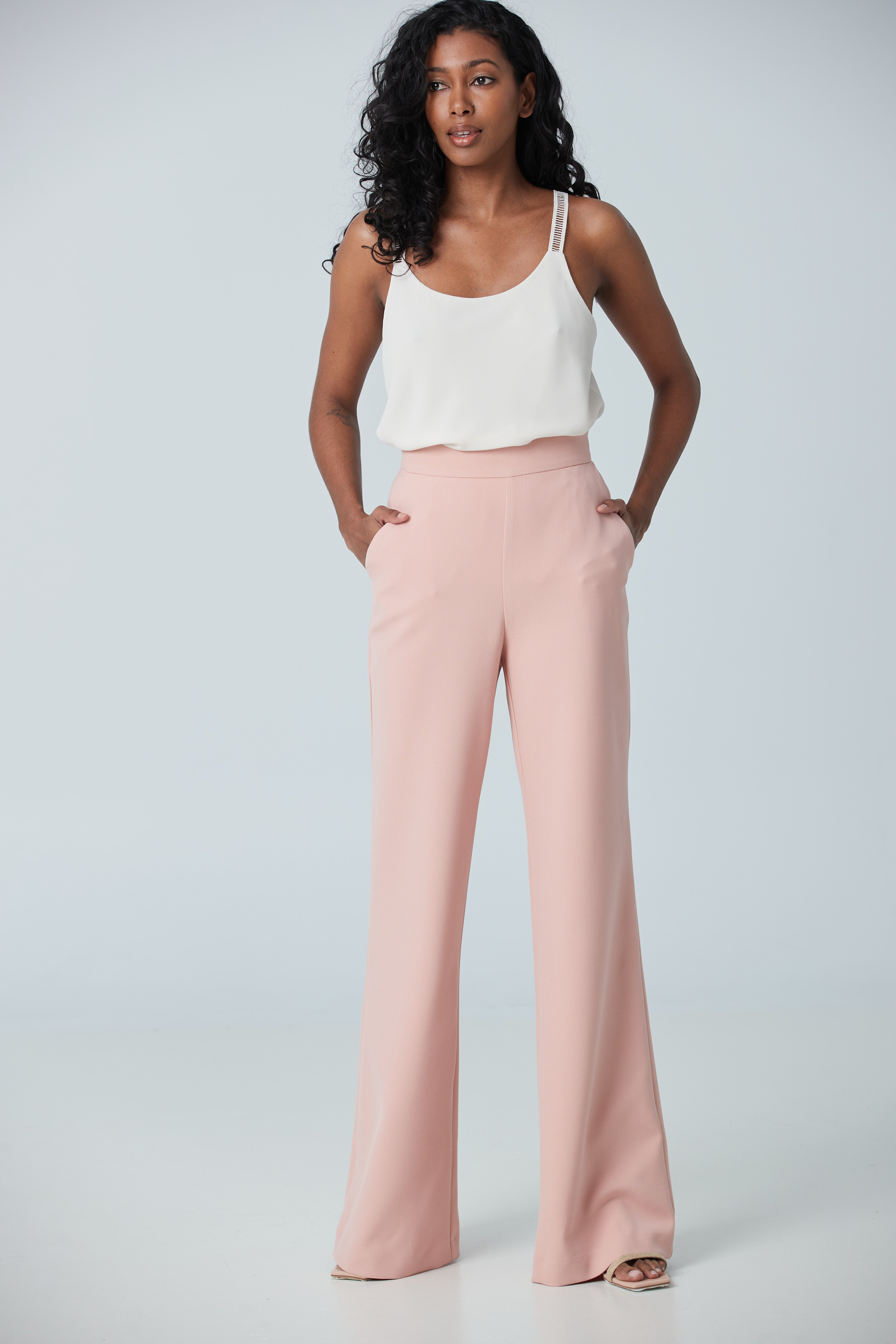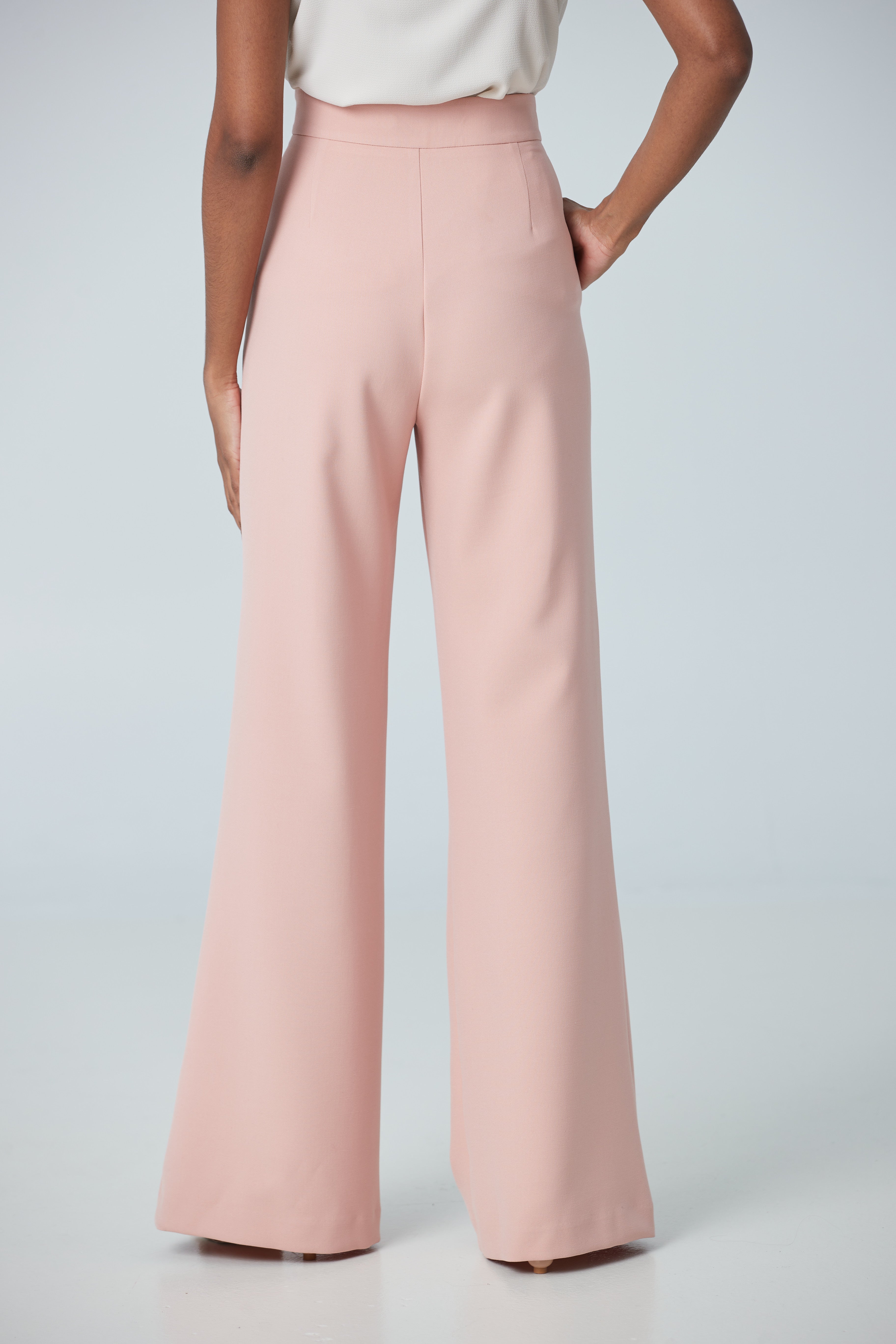 This fabric was imported from Italy. Our design team fell in love at first sight with the texture and appearance of the fabric. High-Rise wide leg pant that goes with everything.