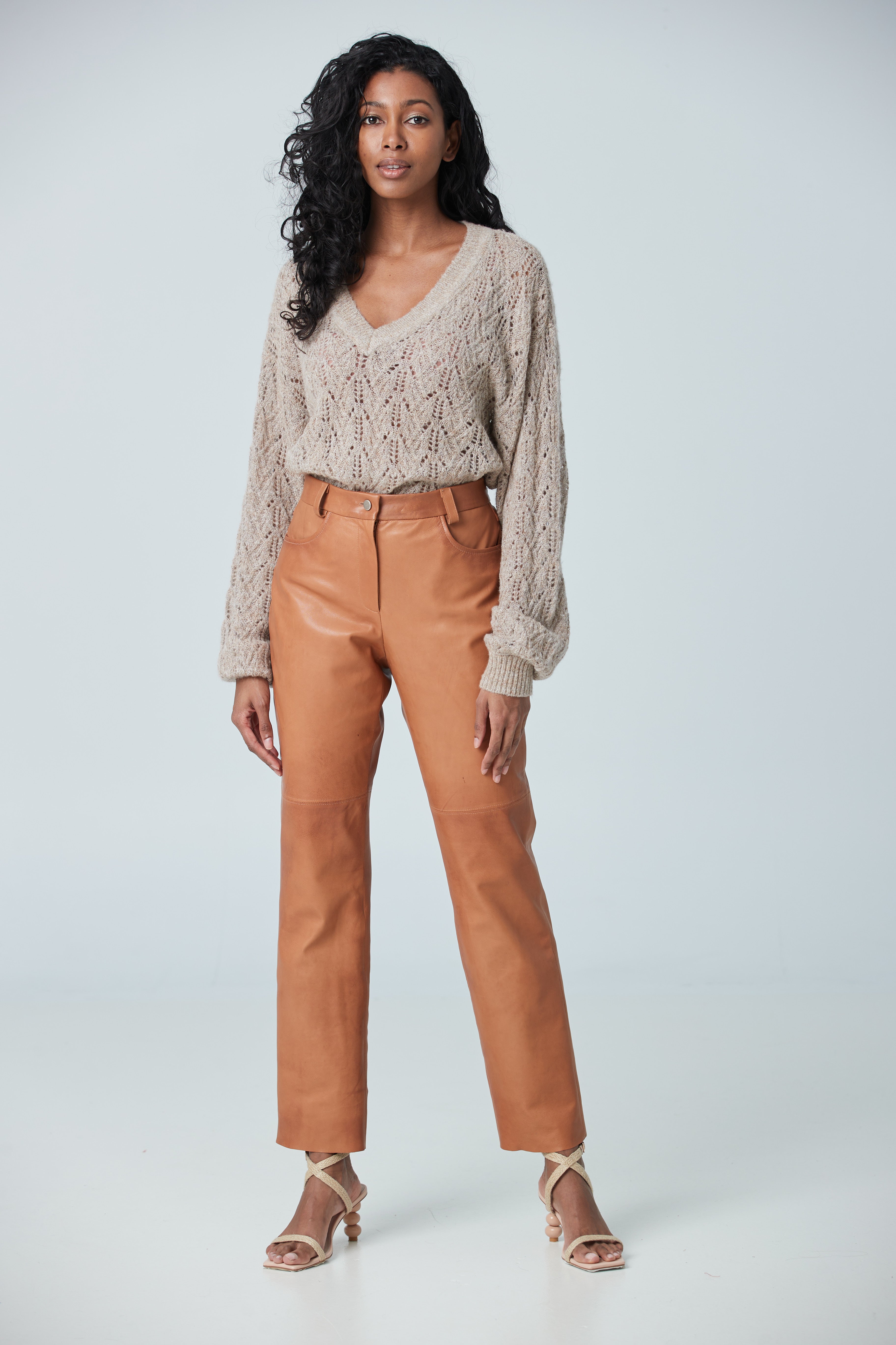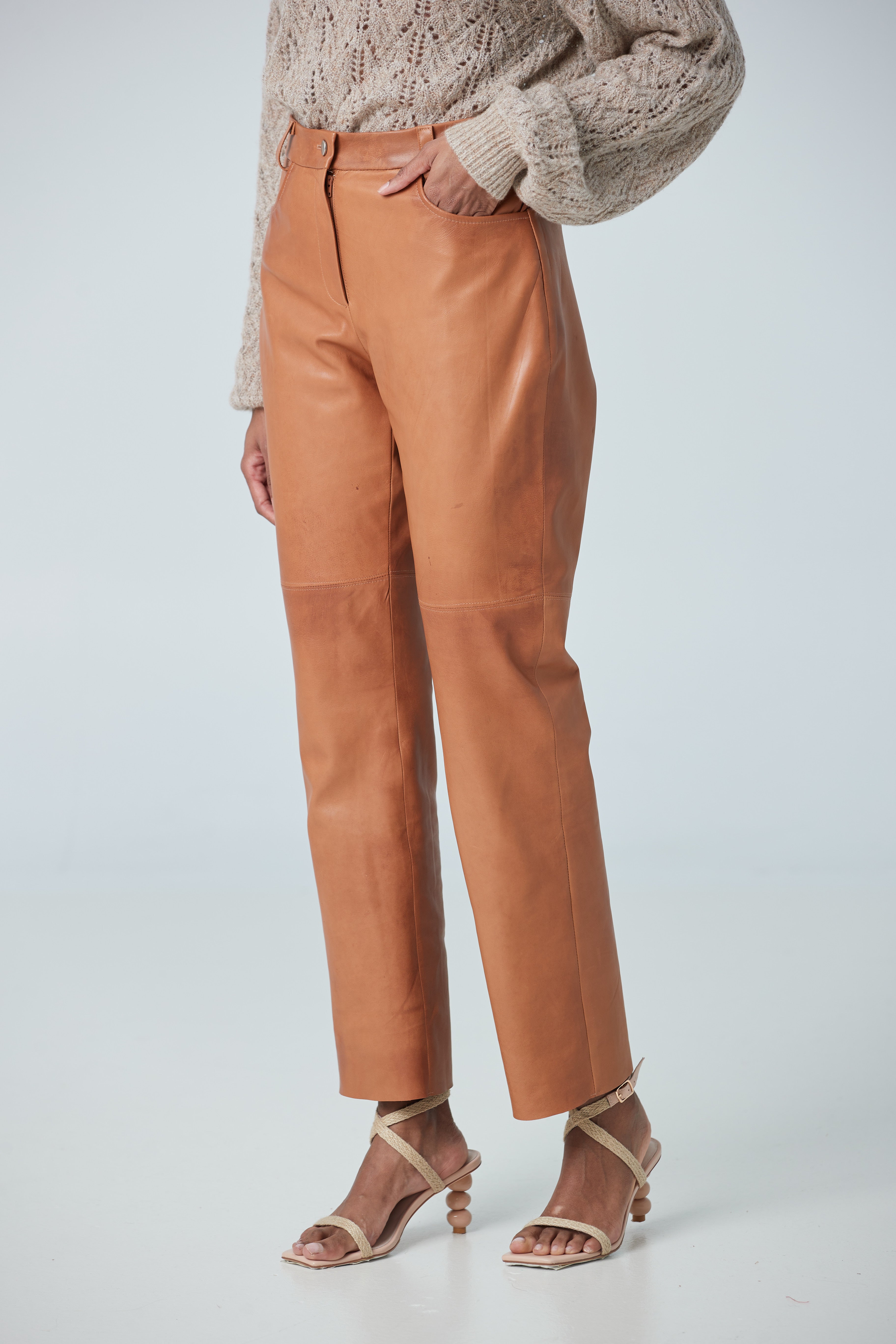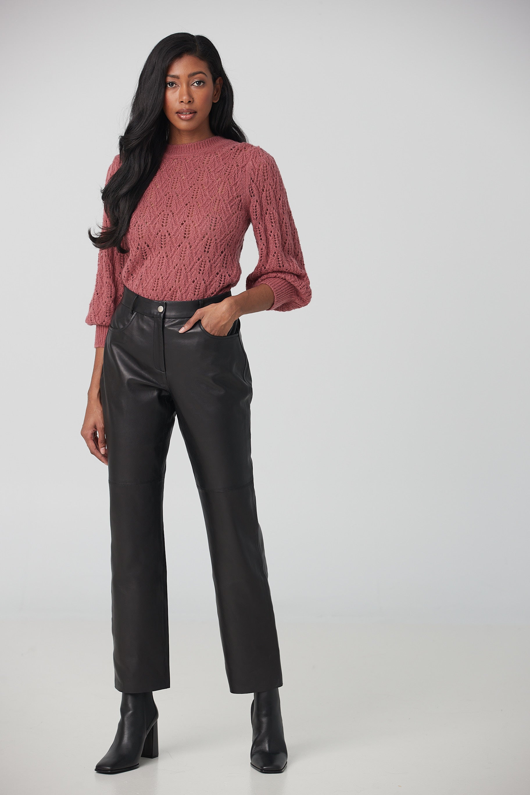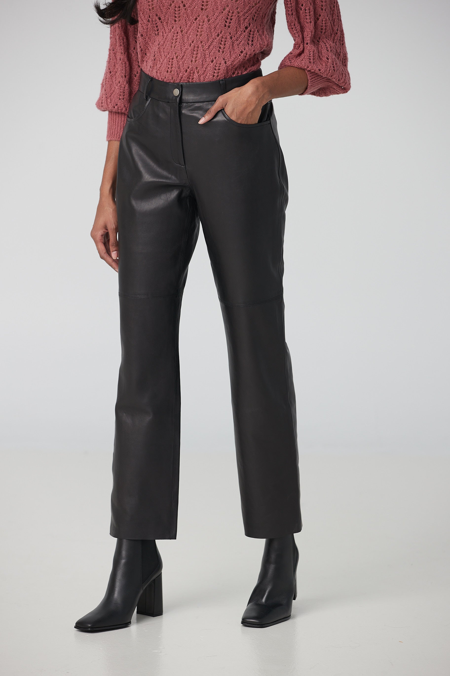 These lambskin straight-leg pants will become your go-to pair of leather pants. Comfortable and stylish wear them to the office with a jacket or on weekends with a knit.