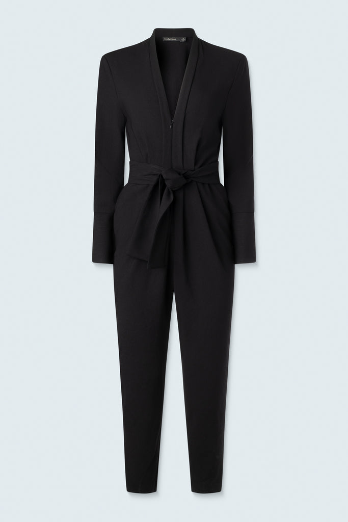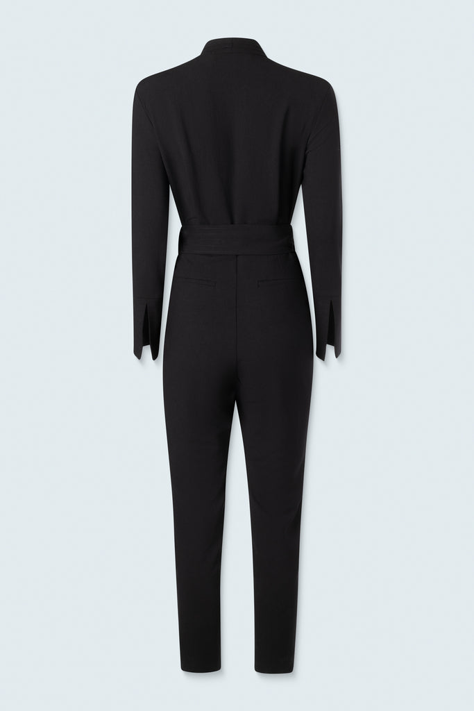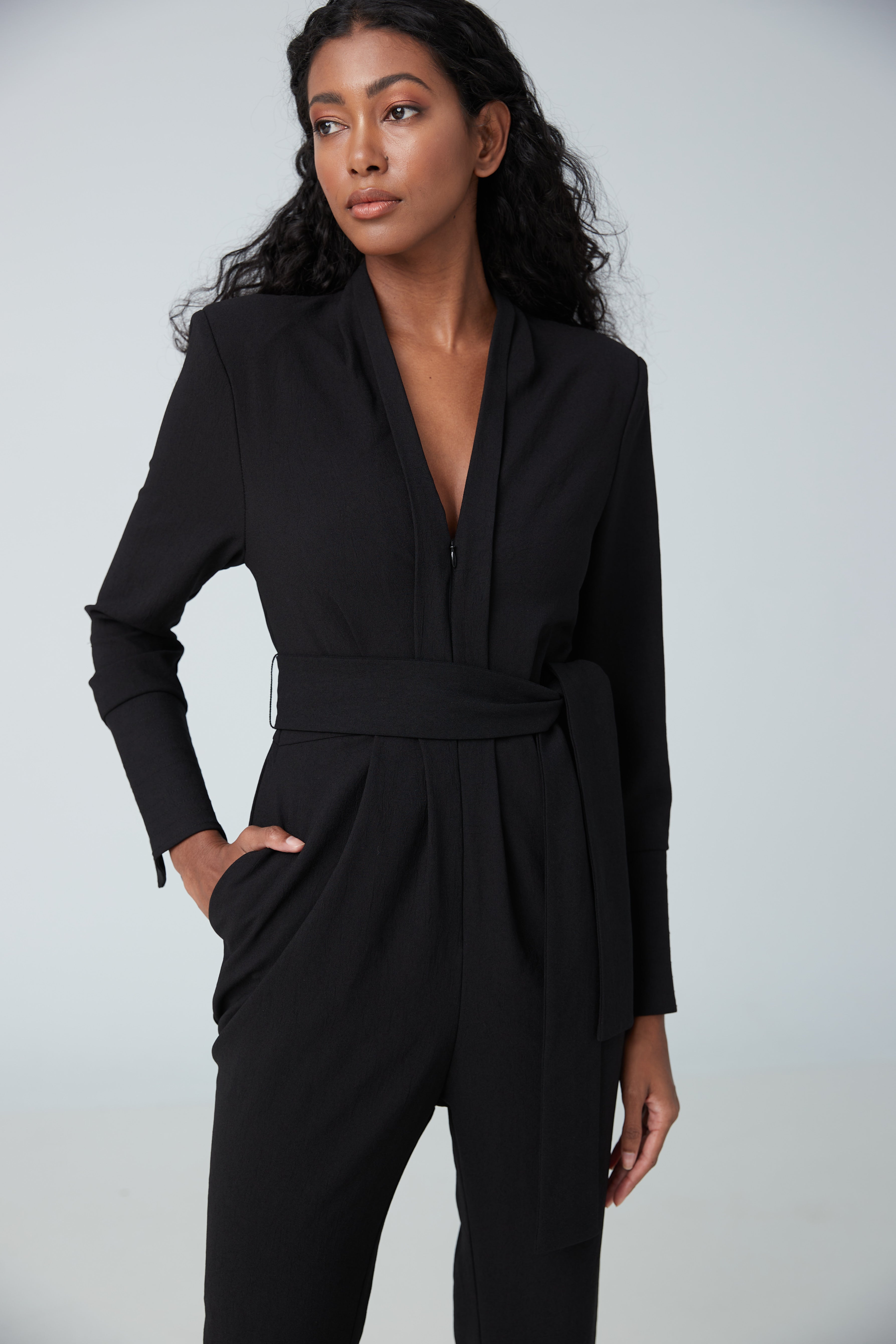 This simple and elegant crepe jumpsuit is a must have for any wardrobe. The double seam detail and waist belt make this pieve unique.