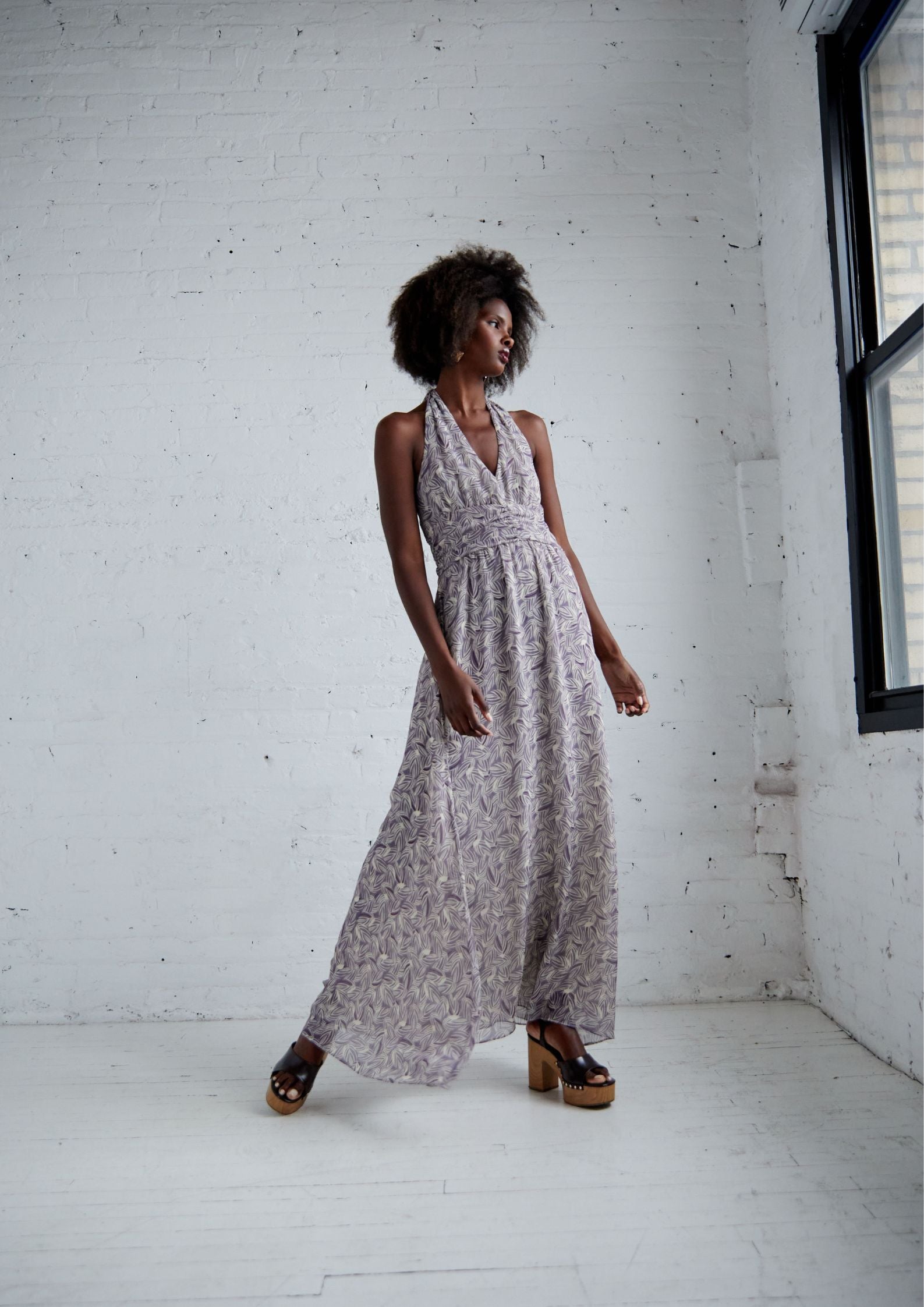 Soft light and wispy this flowing halter dress is perfect for the seasonal transition.