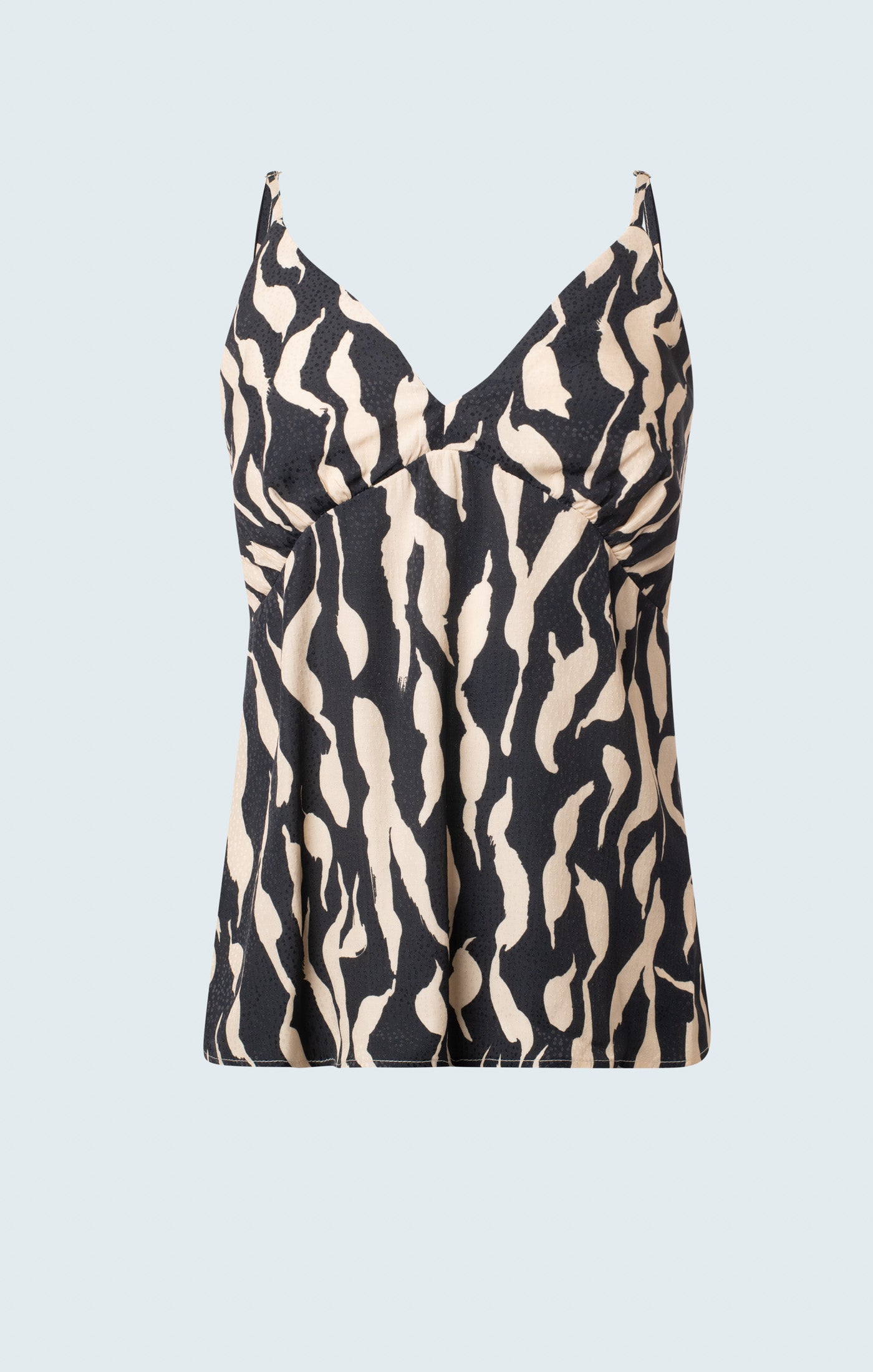 This print camisole will make you feel desirable. Pair it with jeans and pumps for a look that will bring out your femininity.