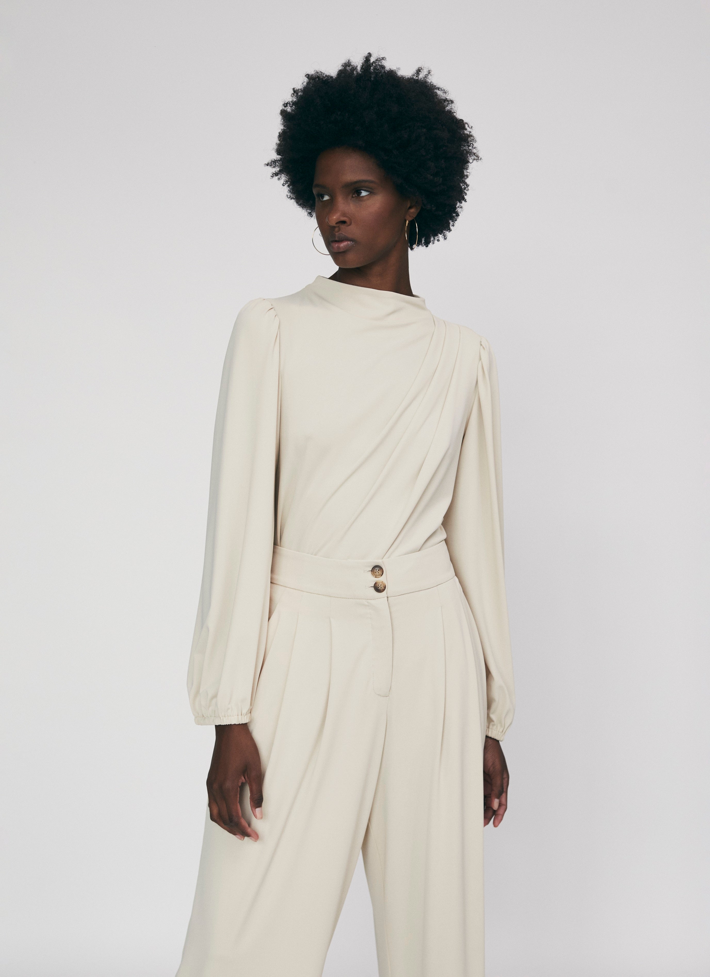 Matte jersey long sleeve blouse. Our easy-care and comfortable travel collection for all occasions. You can wear the pieces in several ways either very casual or very chic depending on your needs.
