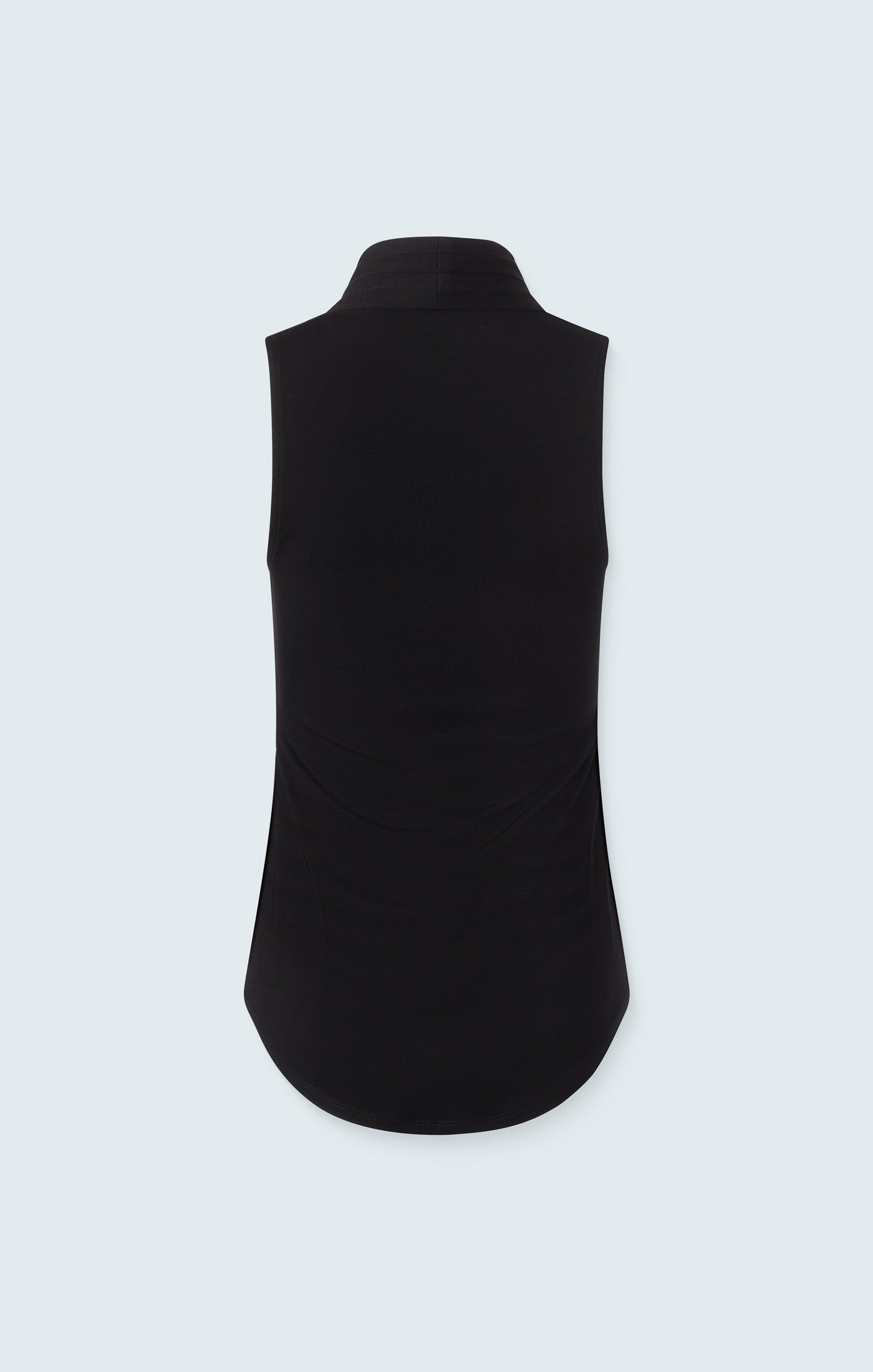 Sleeveless matte jersey top with flattering pleated V-neck. A versatile malleable piece that adapts to any occasion with elegance and ease.