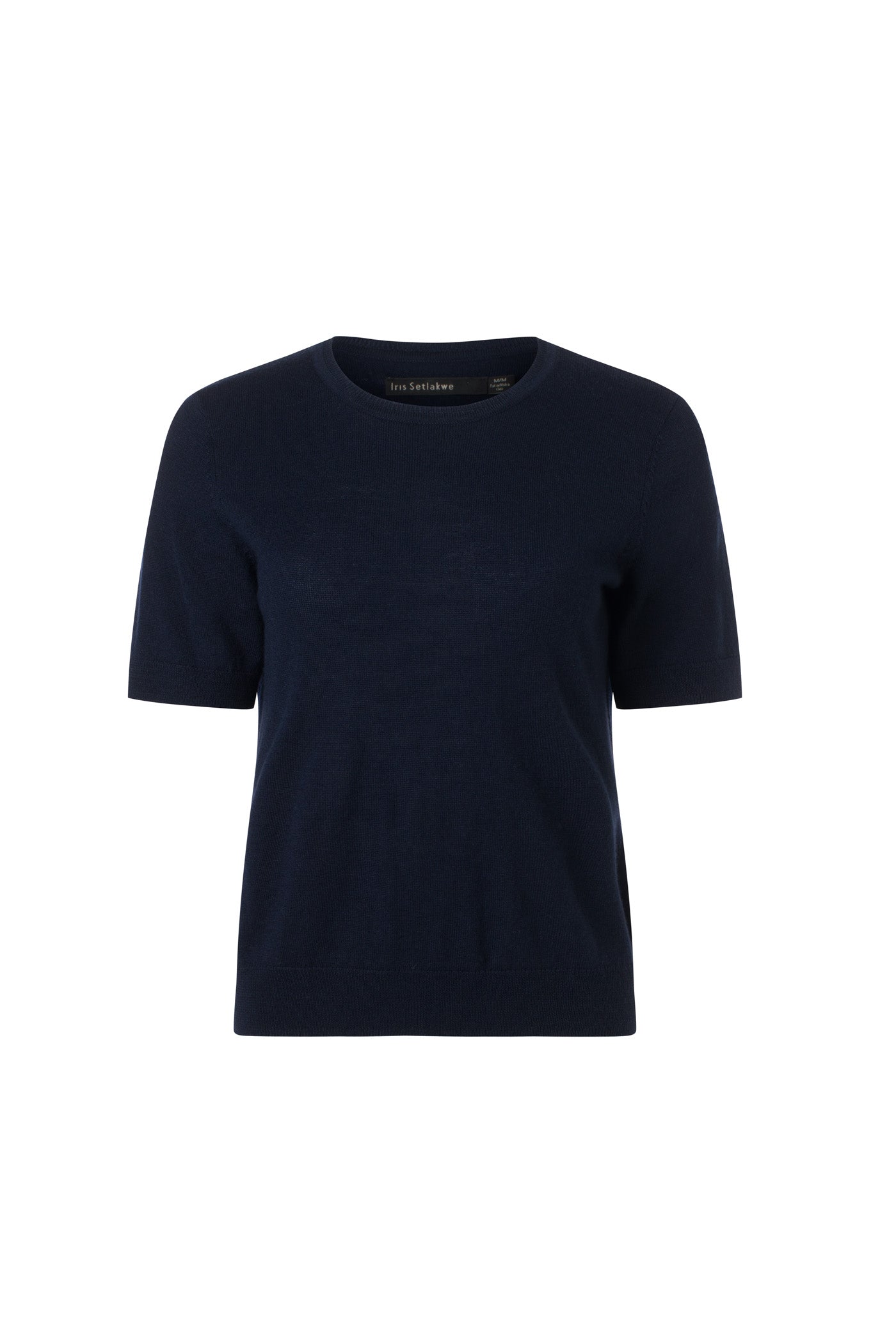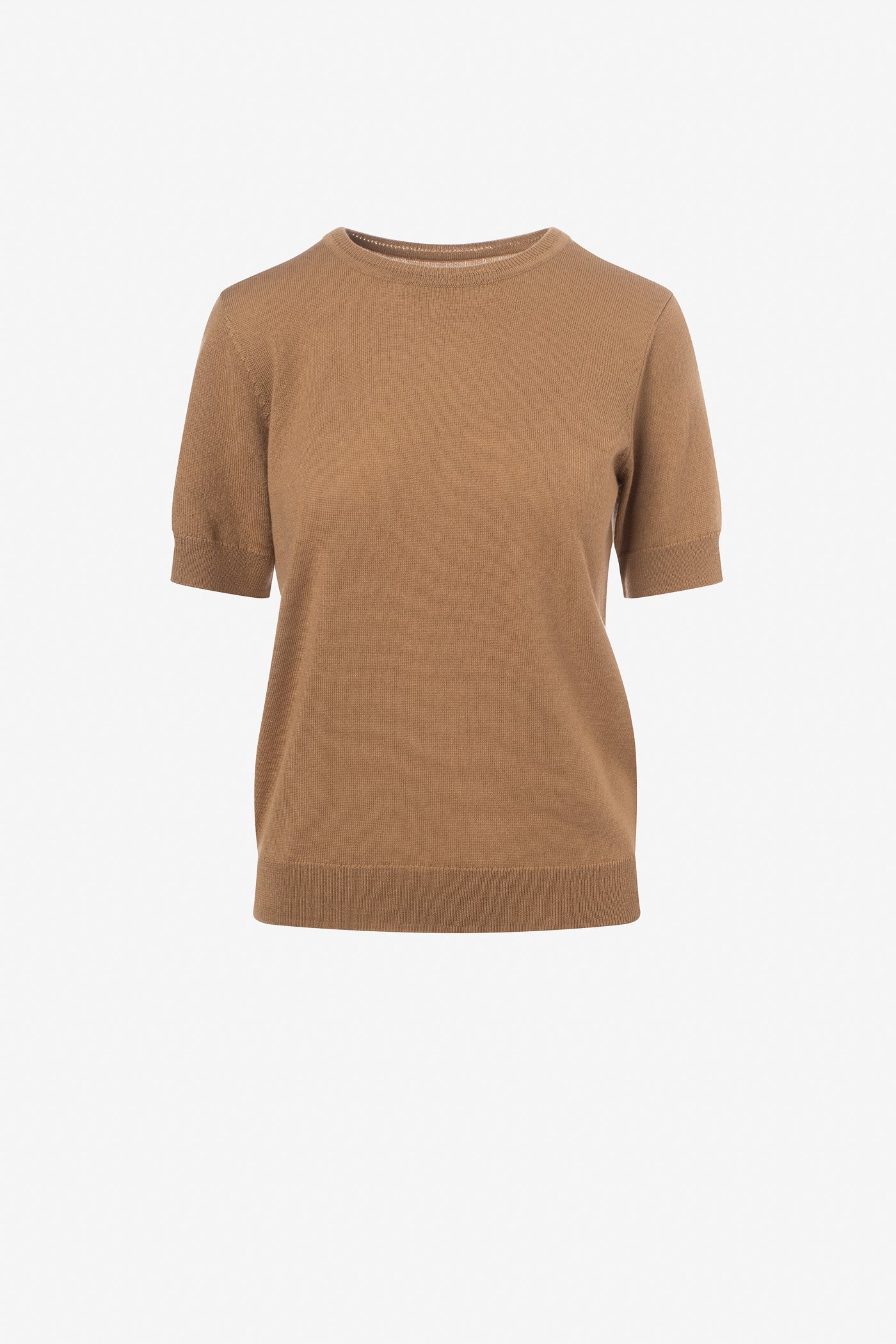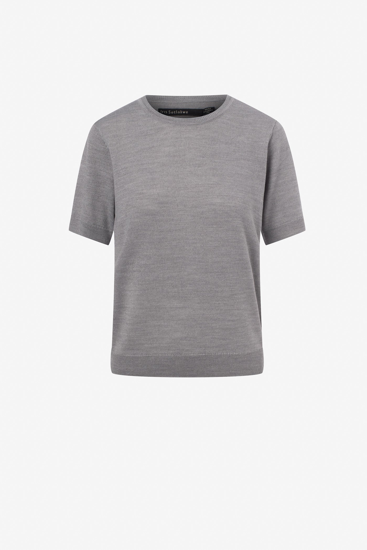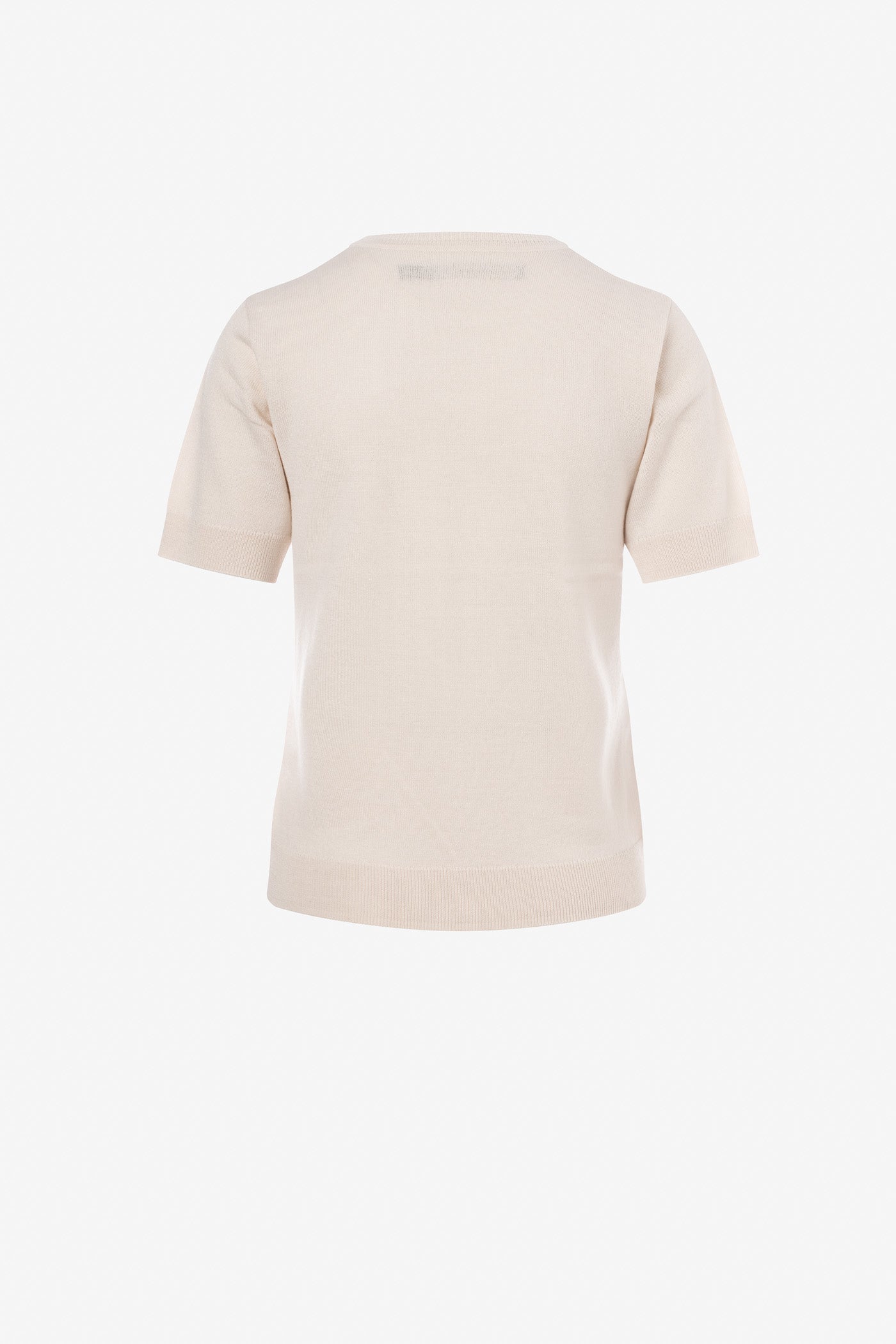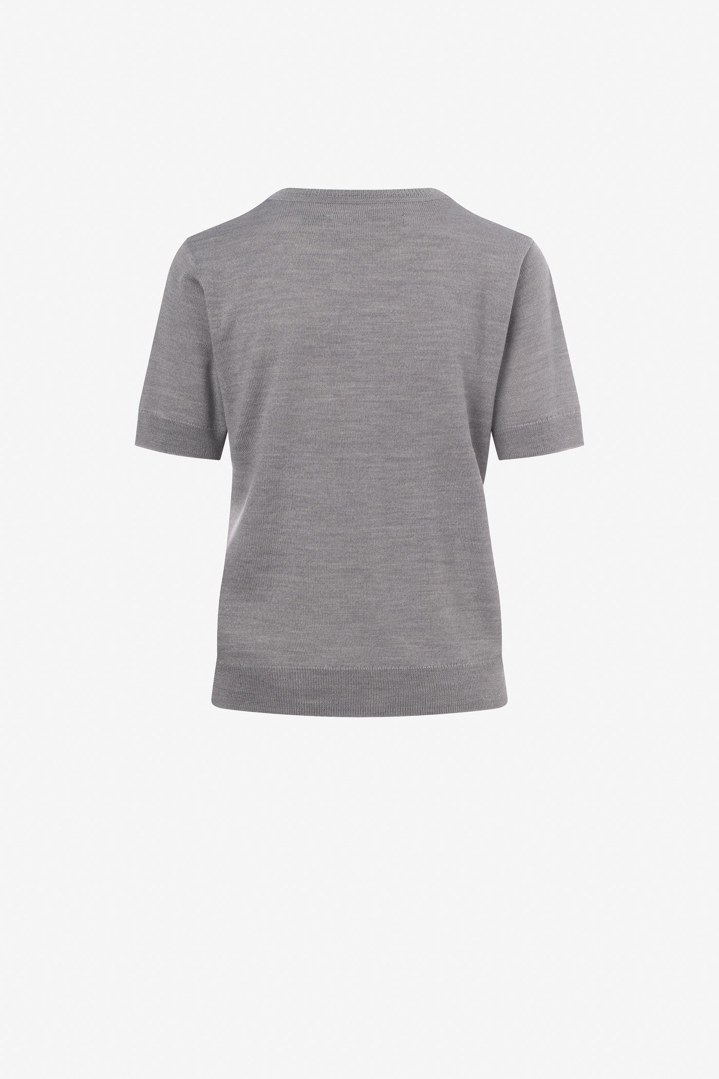 Short-sleeved knit in a soft merino wool blend offering refined texture and natural comfort. A versatile and elegant piece ideal for neat layering or a minimalist look.