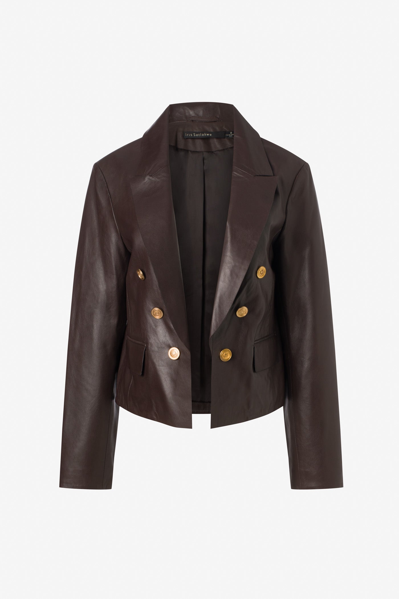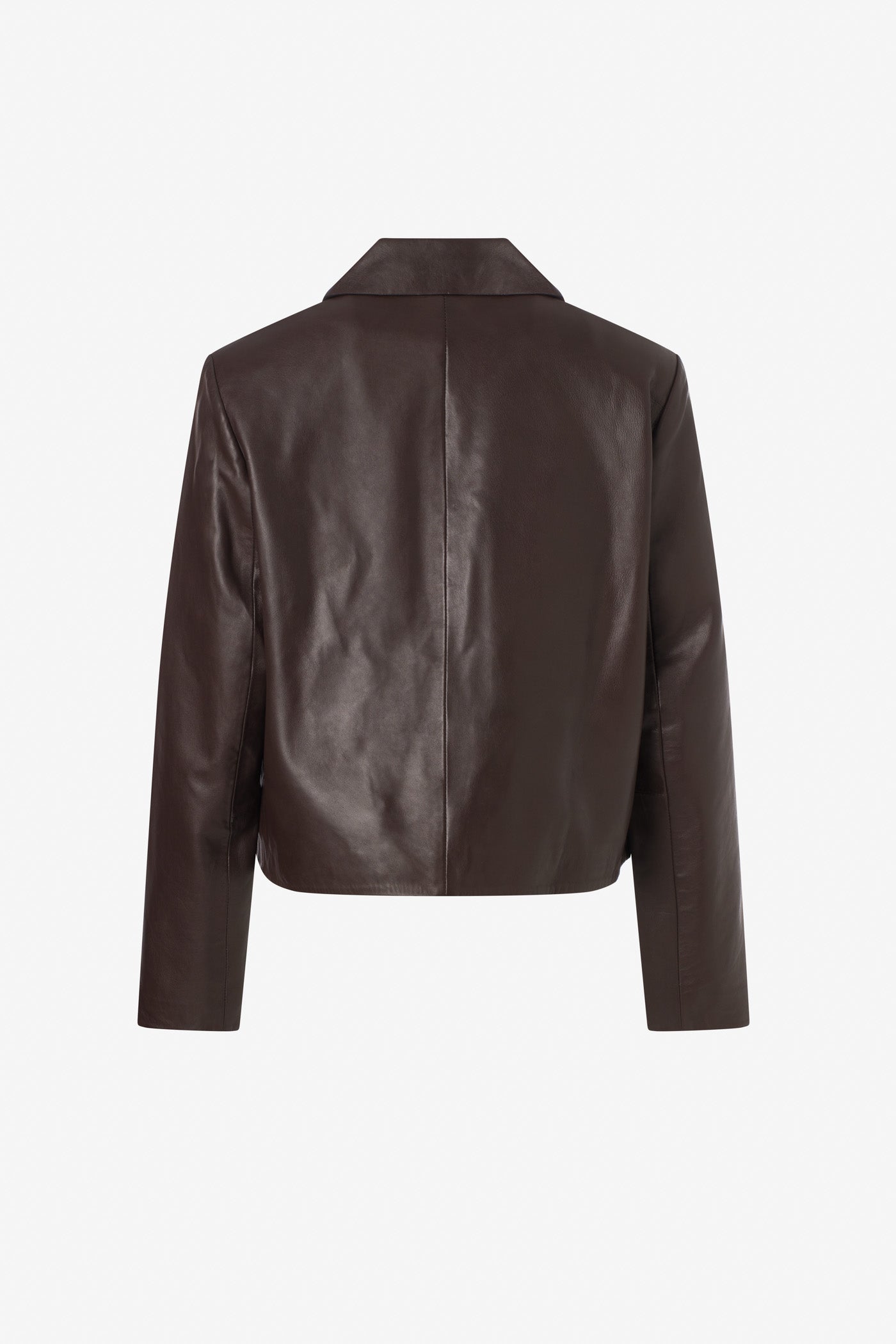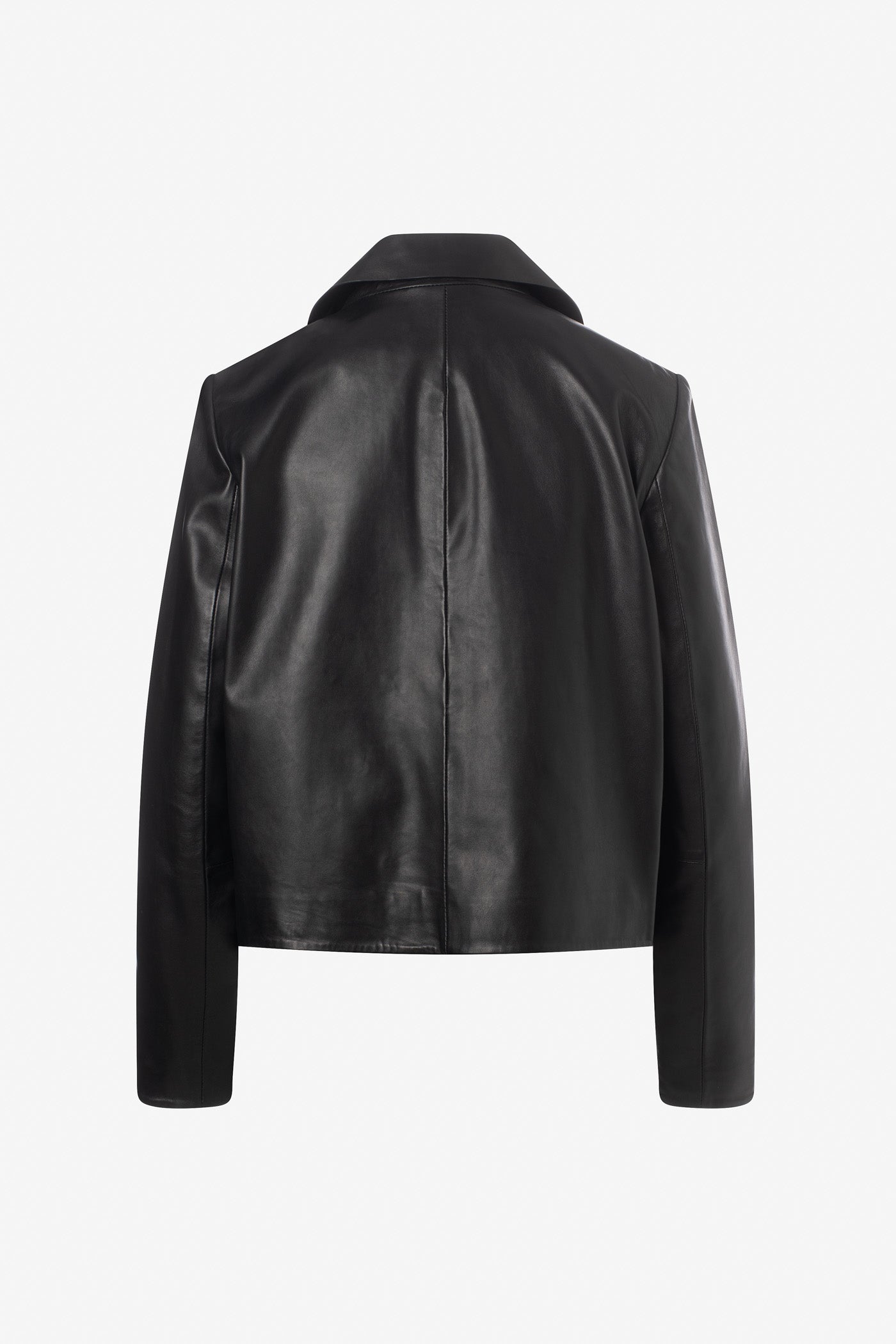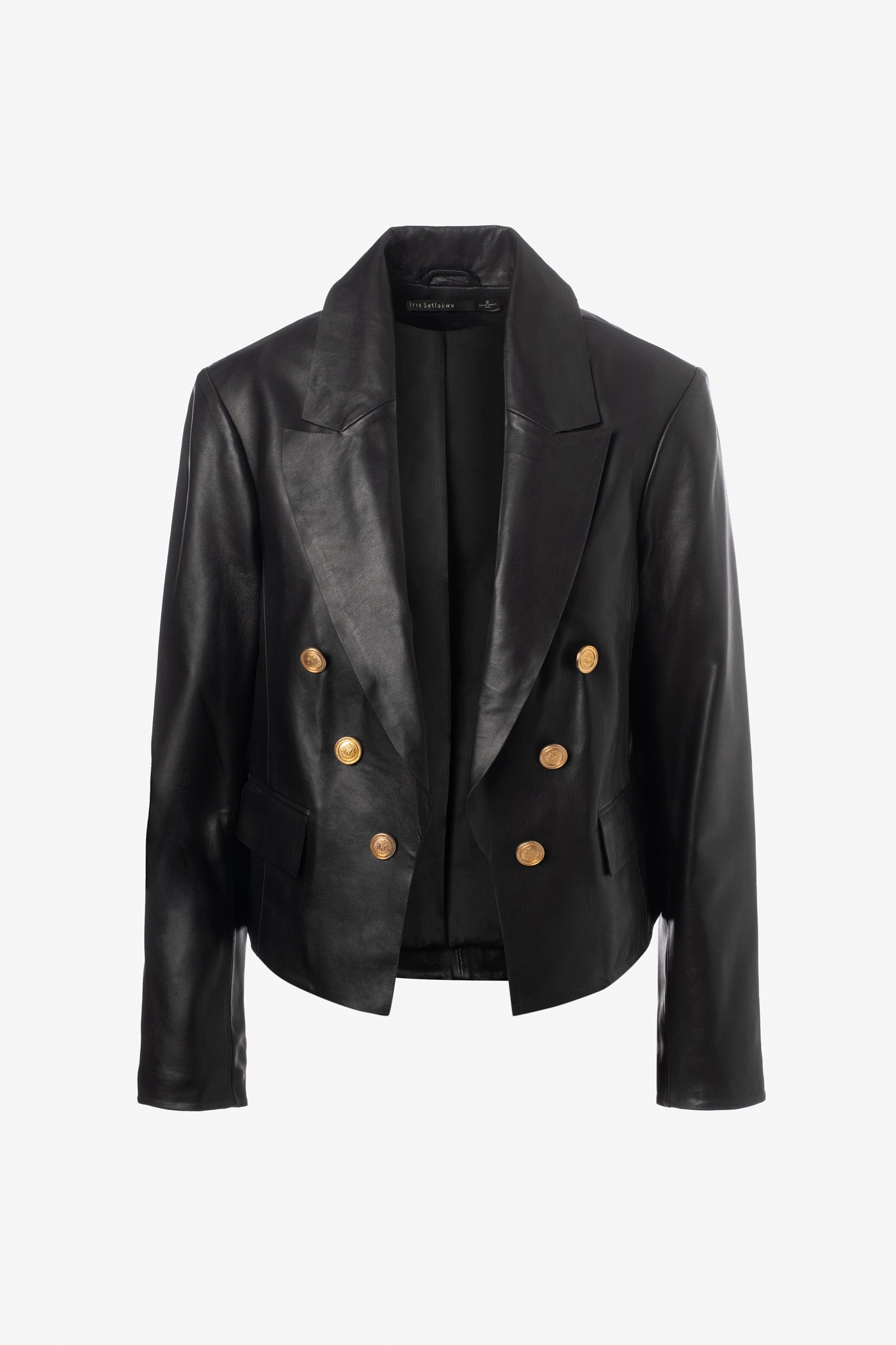 This short leather jacket is designed to be worn open offering a modern casual look. Decorative buttons at the front add a touch of sophisticated style to this bold piece.