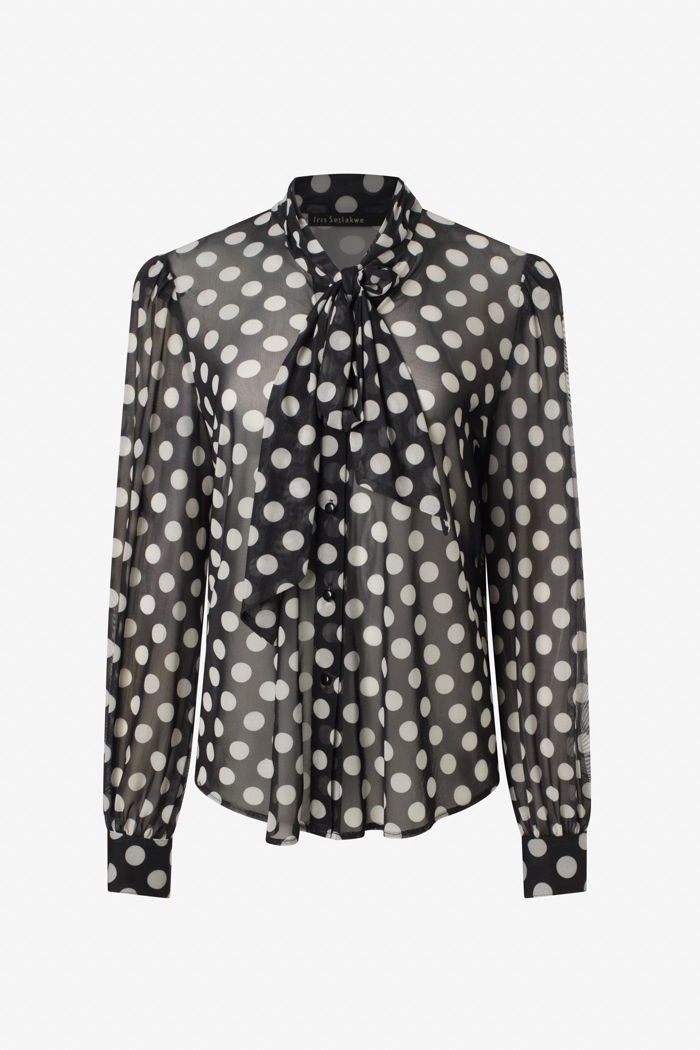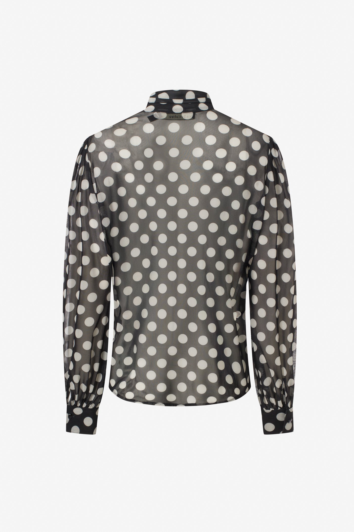 Printed mesh blouse with integrated scarf for an elegant flowing touch. Its lightness and subtle transparency make it a feminine contemporary piece perfect for enhancing your outfits.
