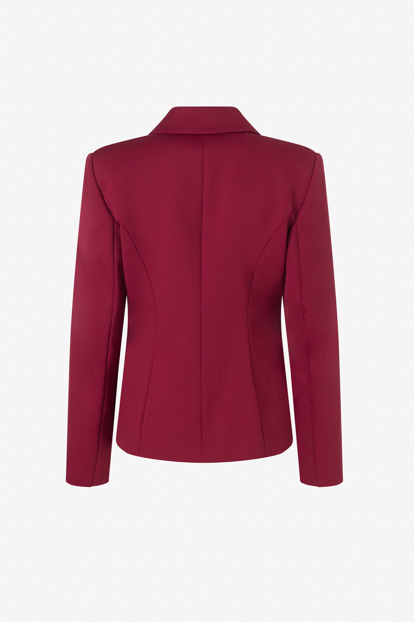 Six-button belted jacket in scuba a smooth stretchy fabric that hugs the silhouette with elegance. Its modern structure and refined allure make it a key piece for an outfit that's both chic and comfortable.