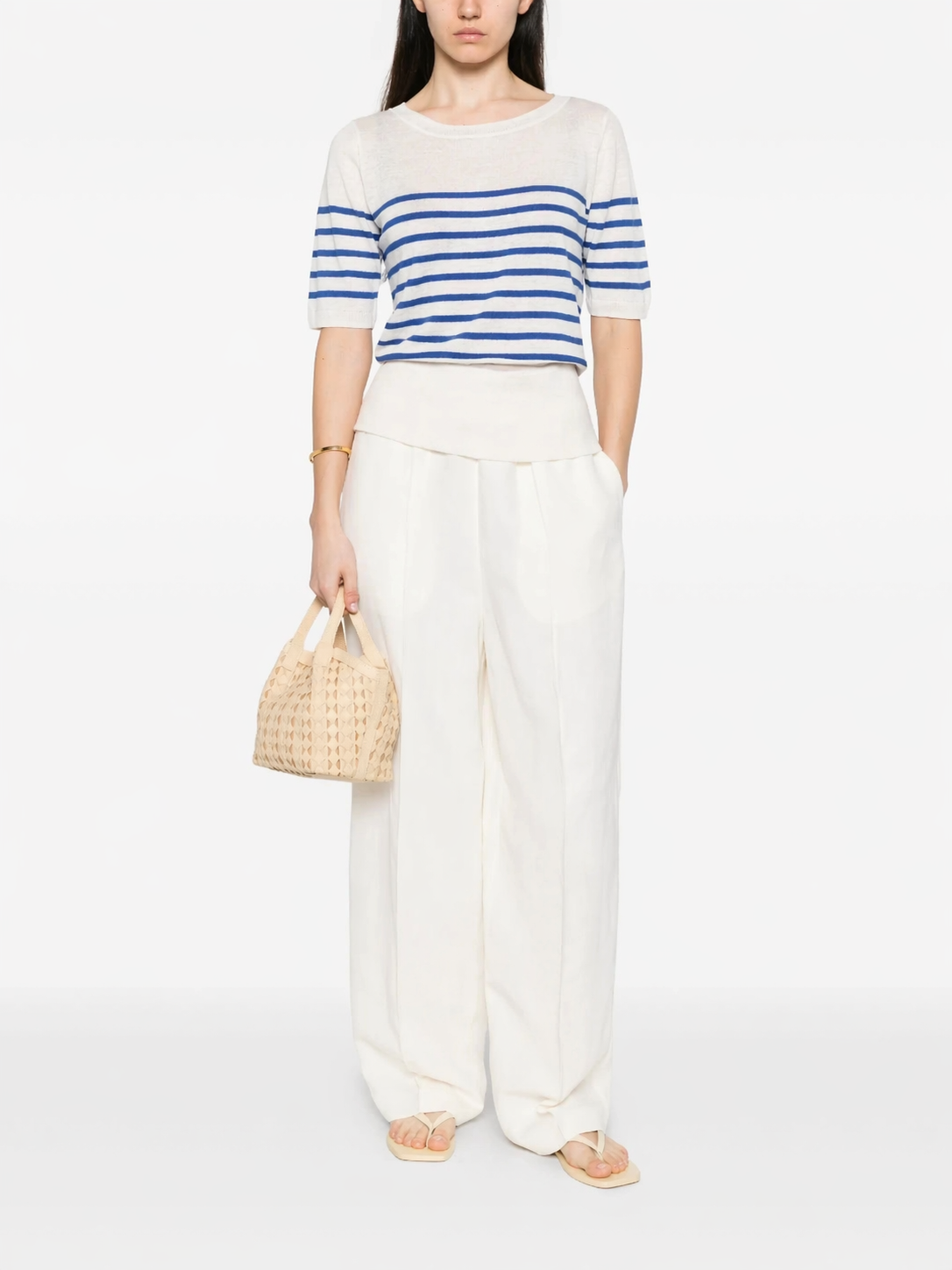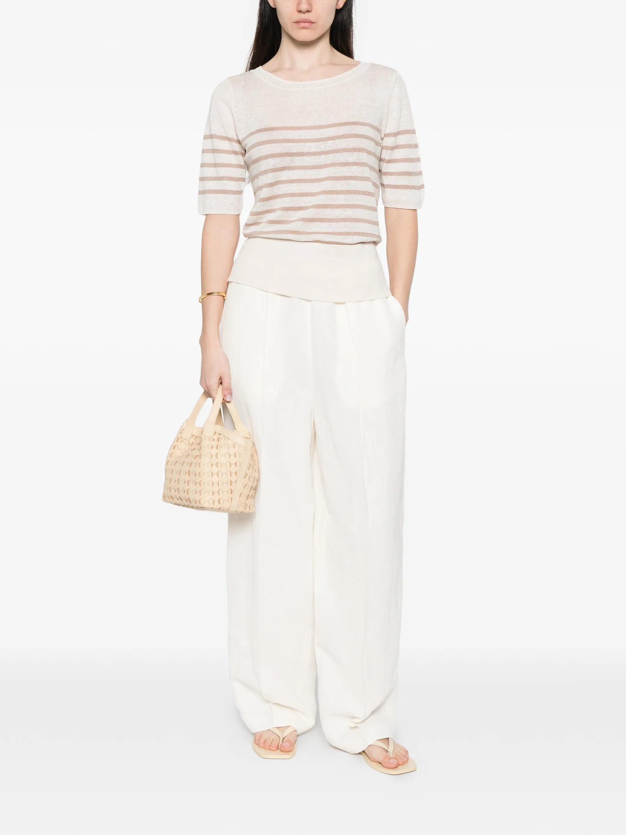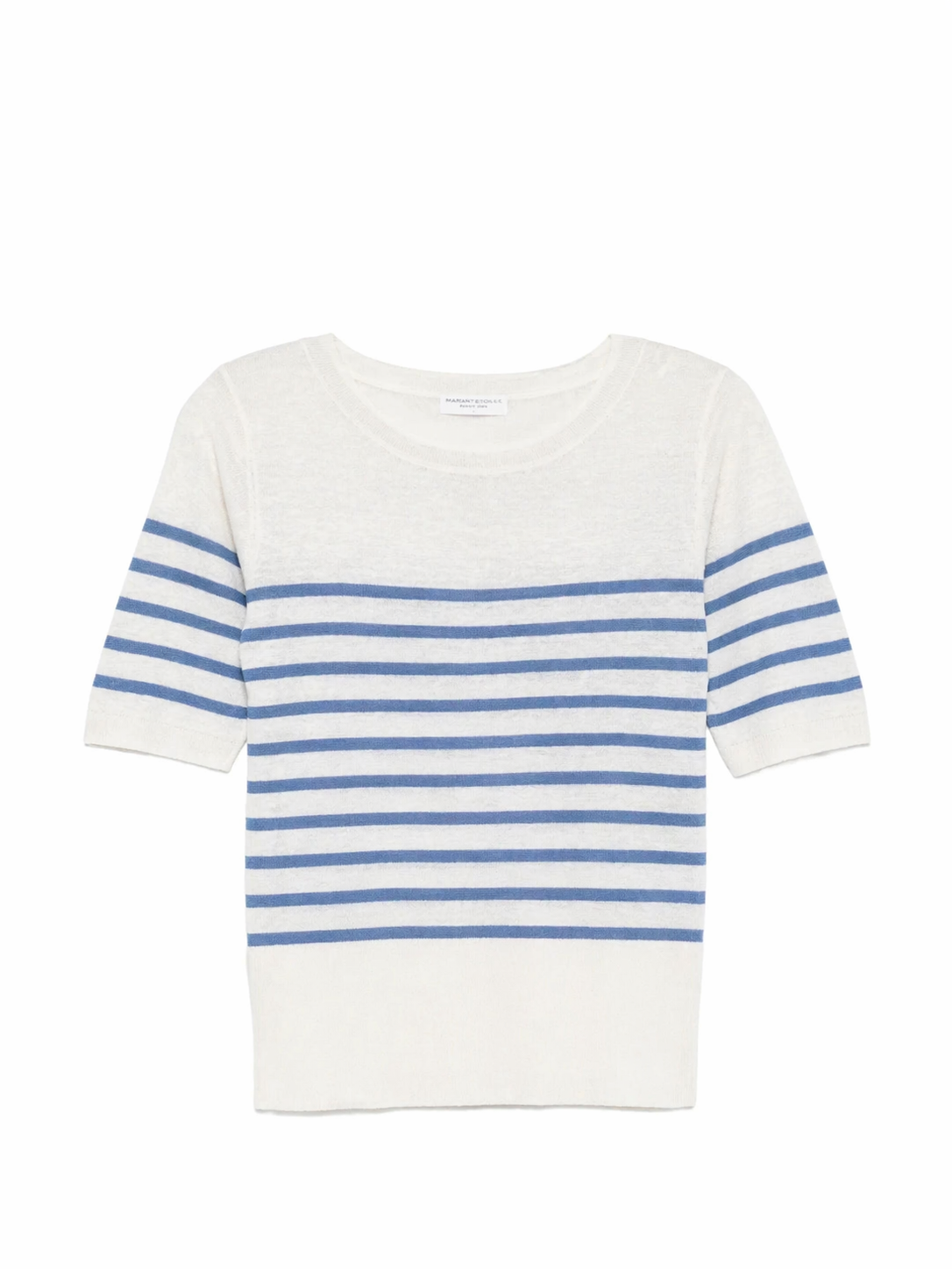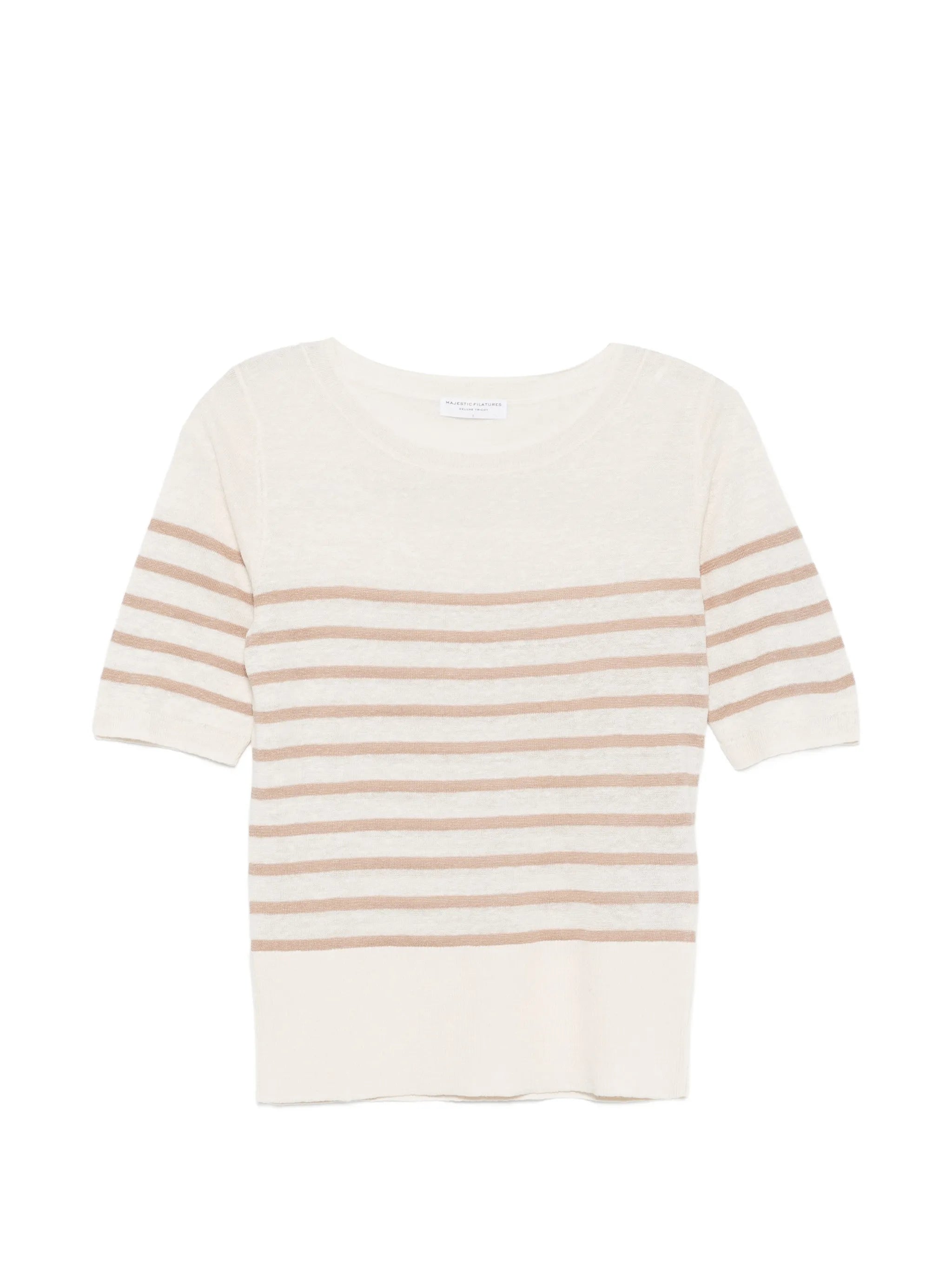 Majestic Filatures - Linen knit stripe elbow sleeve boatneck