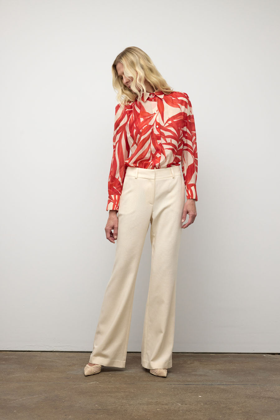 This nature-inspired long-sleeved shirt is carefully pleated at the shoulders for elegant structure. Its vibrant shades of orange make it ideal for elevating your outfits, from the office to evenings out.